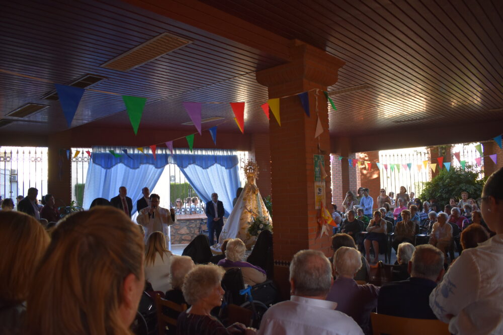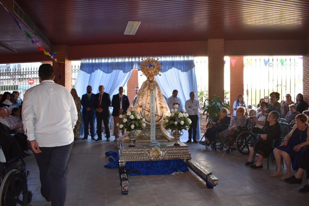 A su llegada a la residencia, se rezó un rosario junto a los mayores, quienes participaron con gran emoción en este momento tan significativo. Tras la oración, la comitiva regresó en procesión hasta la ermita, culminando un acto histórico y nunca antes celebrado en la localidad.