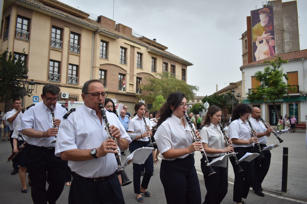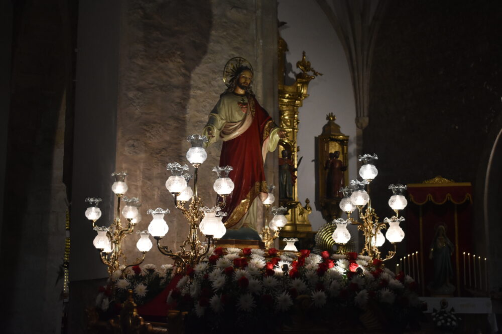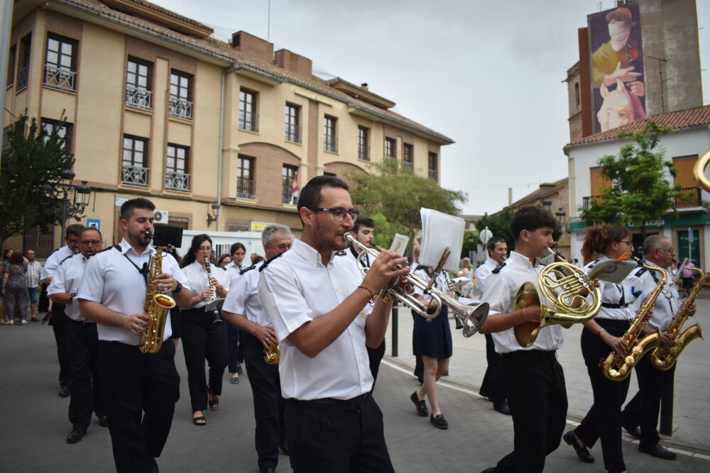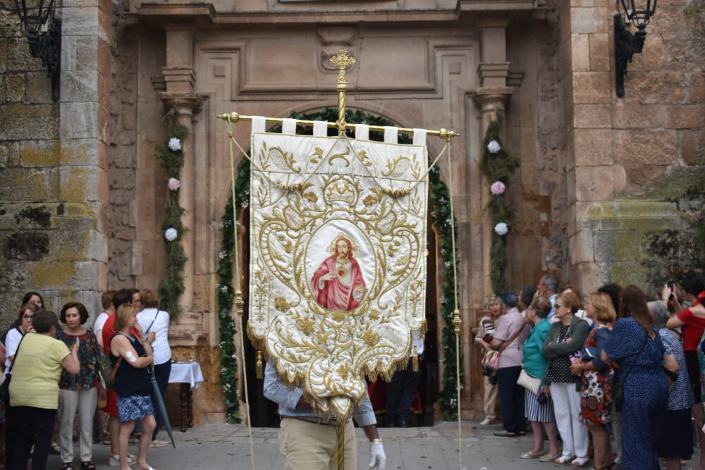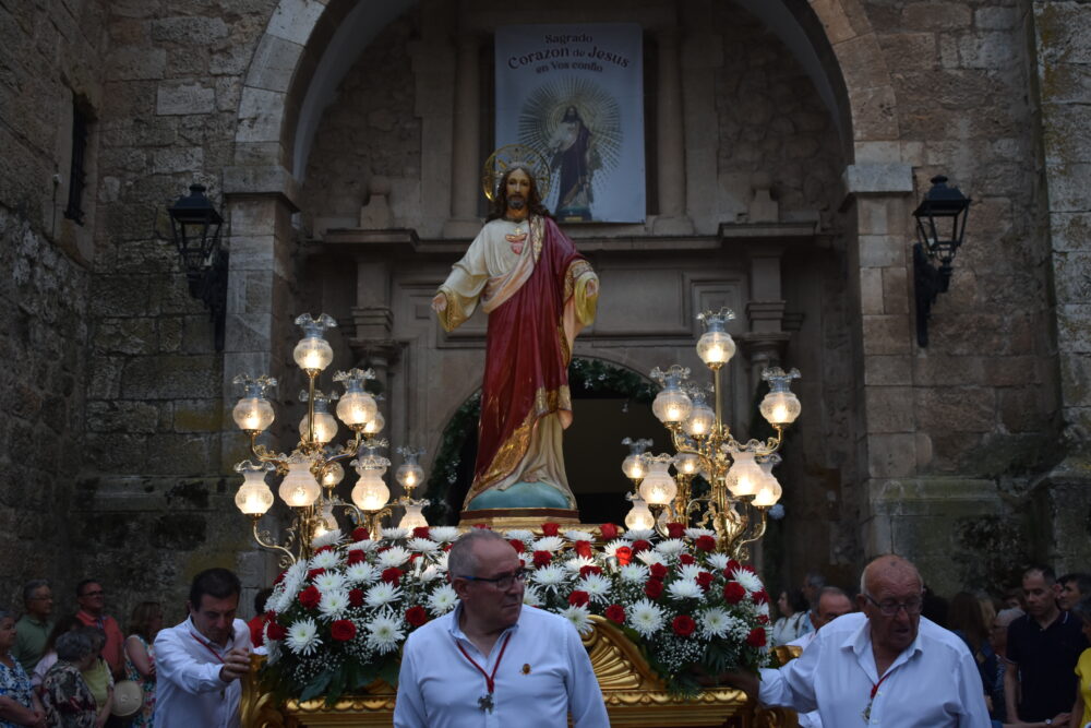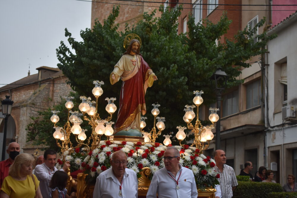 Posteriormente, ha dado comienzo la Procesión, donde pasadas las 20:30h las calles se han llenado para ver salir del Templo Parroquial a la imagen del Sagrado Corazón de Jesús, acompañado por los miembros de la Hermandad y seguido por la Corporación Municipal y la Banda Sinfónica Municipal de Quintanar de la Orden, dirigido por D. Sebastián Heras Romero.