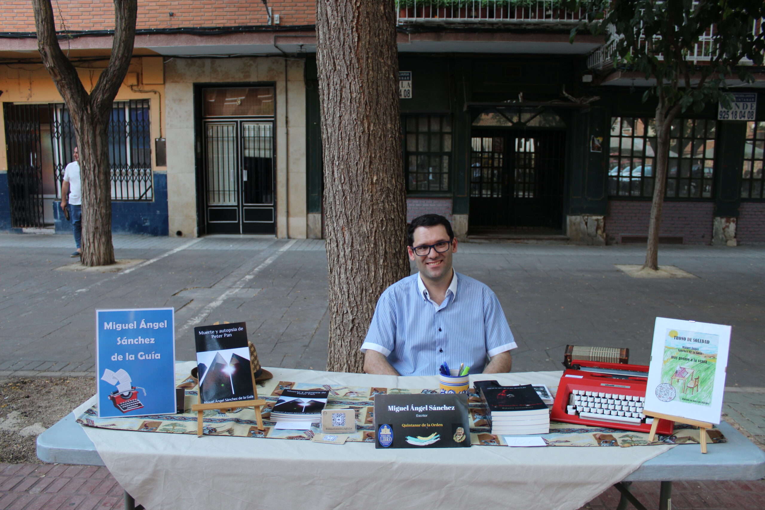 El escritor Miguel Ángel Sánchez también estuvo durante toda la tarde en el Paseo. Él es vecino de Quintanar y escribe poesía y relato.
