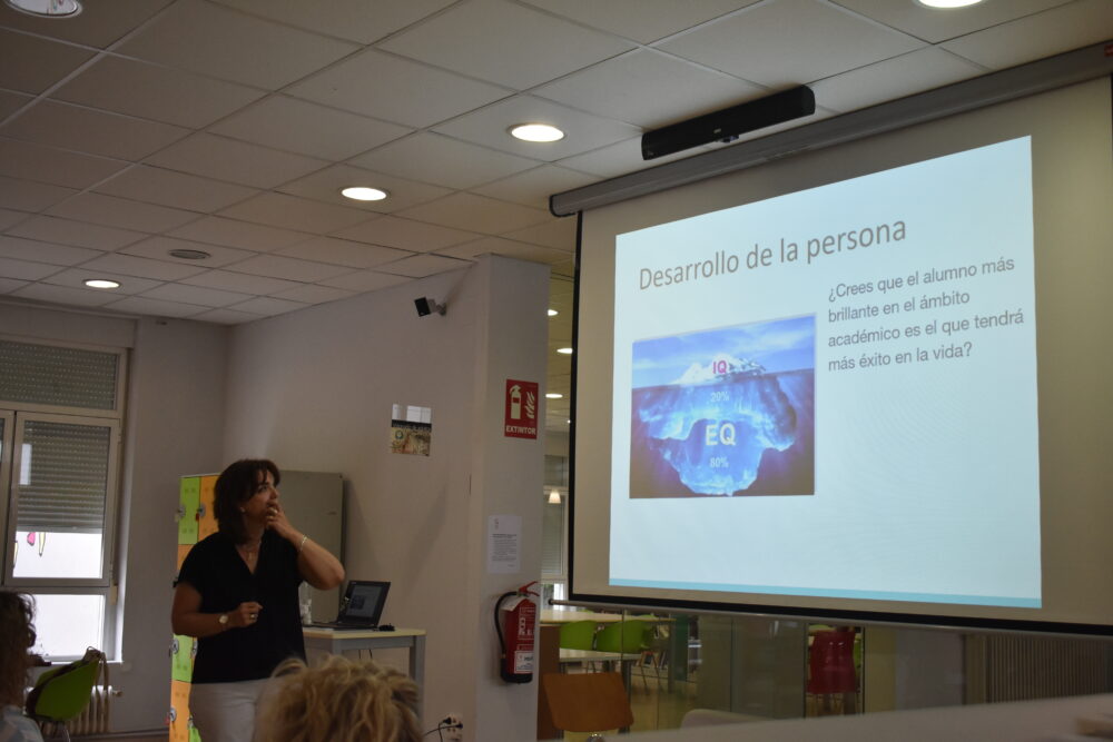 Durante la charla, María Luz ha mostrado a los presentes las diferentes definiciones de la gestión emocional y de cómo afecta a los jóvenes, y de cómo, a través de la comunicación y la atención, mejorar la gestión emocional propia para con los hijos.
