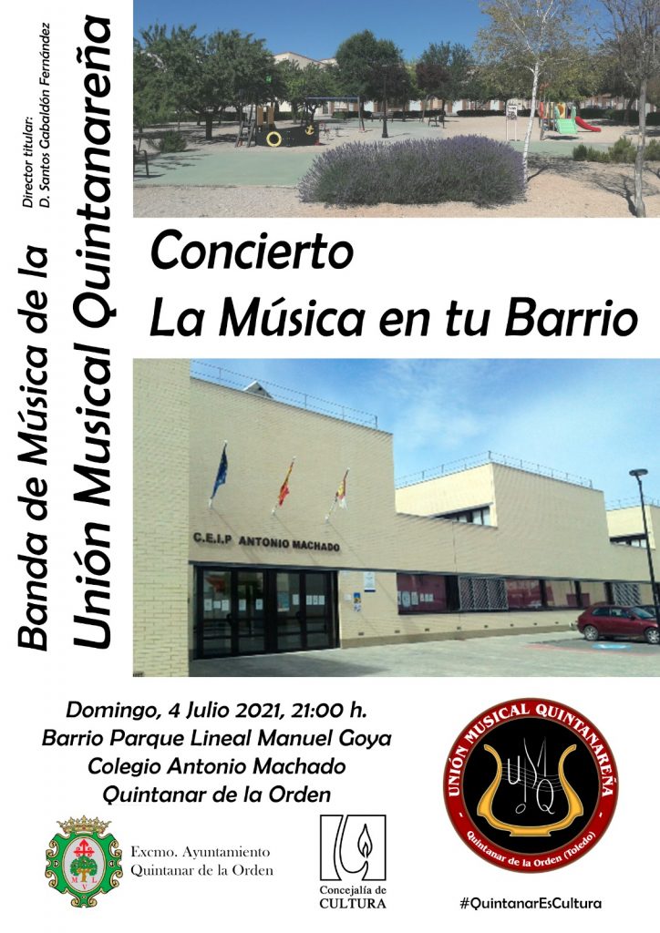 Un año más, la Unión Musical Quintanareña celebrará su tradicional concierto “La Música en tu Barrio” y, en esta ocasión, tendrá lugar en la zona del Colegio Antonio Machado.