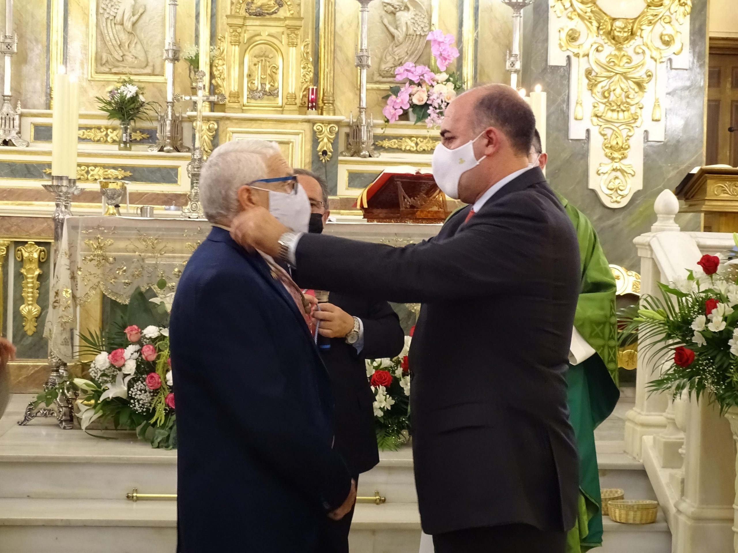 Como cada mes de septiembre, en la Ermita de la Virgen de la Piedad y el Cristo de Gracia durante la celebración del primer Triduo en honor al patrón quintanareño, tenía lugar la imposición de medallas a los nuevos mayordomos, camarera y servidor y la despedida de los que ya han cumplido su misión en la Mayordomía.