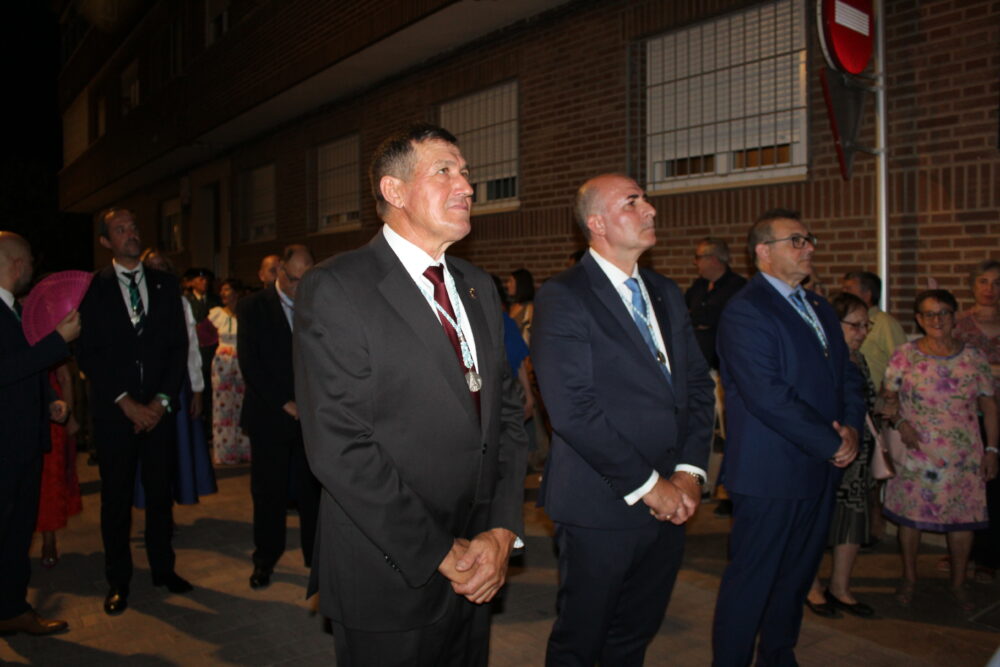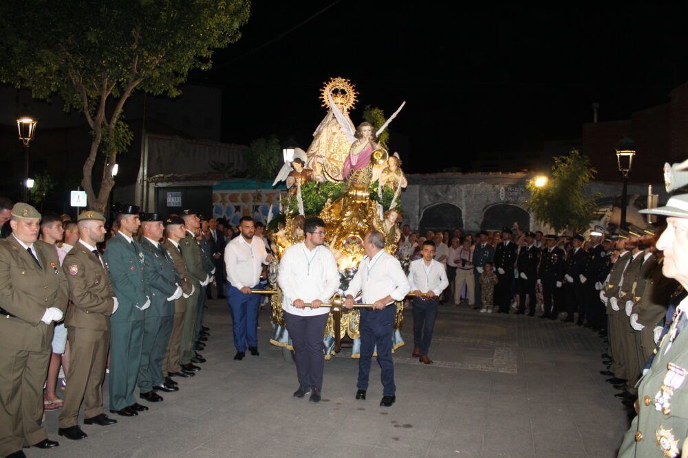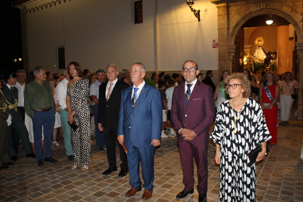 El Mayordomo Mayor, Julio Fernández, presidía la procesión. El mismo estaba acompañado de los demás mayordomos, servidores y camareras. Además de la Junta Directiva de la Hermandad-Mayordomía de la Virgen, la Reina y Damas de las Fiestas 2023 y las autoridades civiles y religiosas y los Cuerpos de Seguridad del Estado y Fuerzas Armadas que habían hecho esa misma tarde un acto en la localidad.