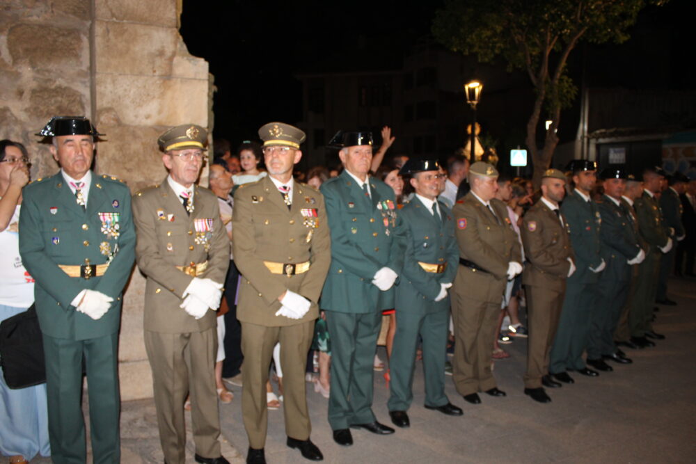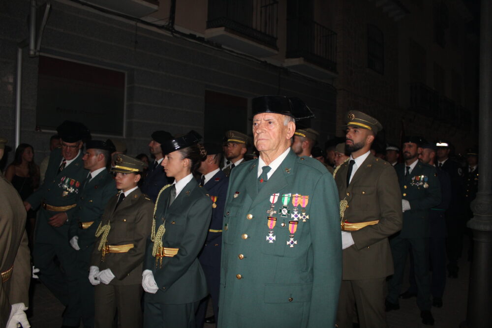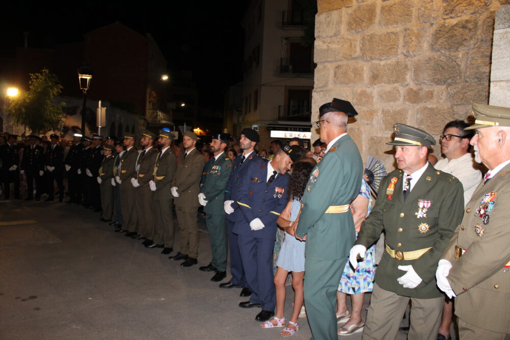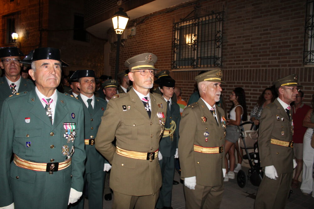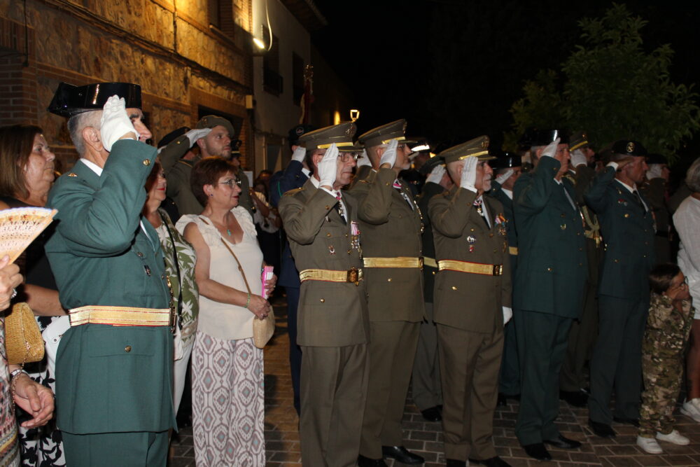 A la llegada de la patrona de Quintanar a la Parroquia de la localidad los Cuerpos de Seguridad del Estado y Fuerzas Armadas le hacían un paseíllo y el saludo militar mientras sonaba el Himno Nacional.