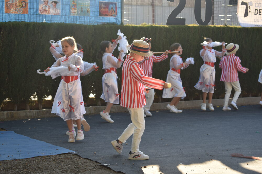La fiesta se ha compuesto de diversas actuaciones de cada curso del colegio, desde 1º de Infantil hasta 4º de la E.S.O., que han bailado y cantado diferentes canciones de películas mundialmente conocidas, como es el caso del Rey León, High School Musical o Grease, ante la emocionada y atenta mirada de los familiares, que cantaban con ellos.