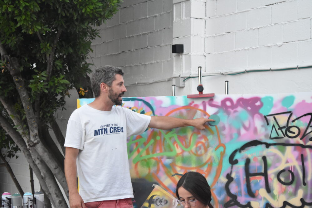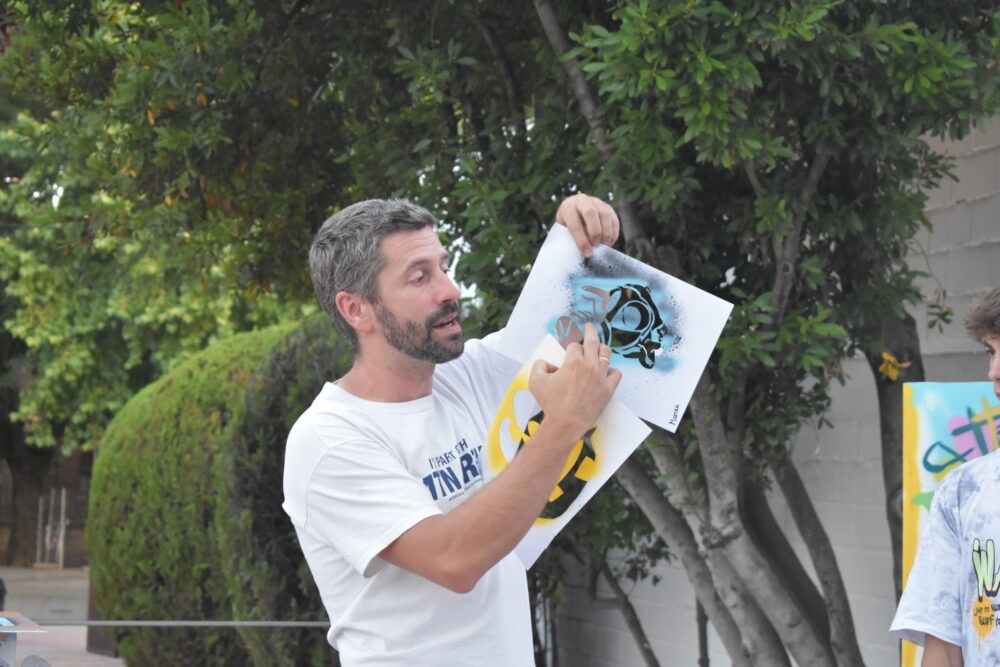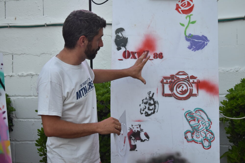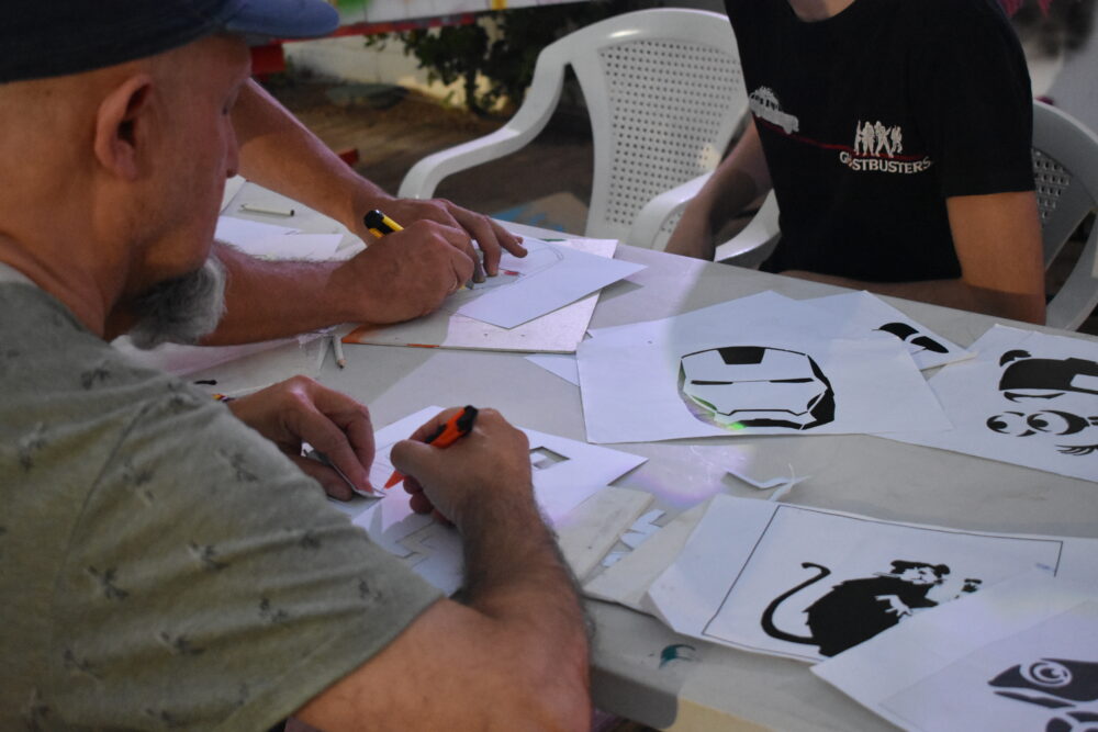 Posteriormente, el miércoles el taller se enfocó a un público más adulto, donde también los mayores tuvieron la oportunidad de aprender las diferentes formas y prácticas del arte urbano, aprendiendo a crear plantillas y nuevas formas de pintar.