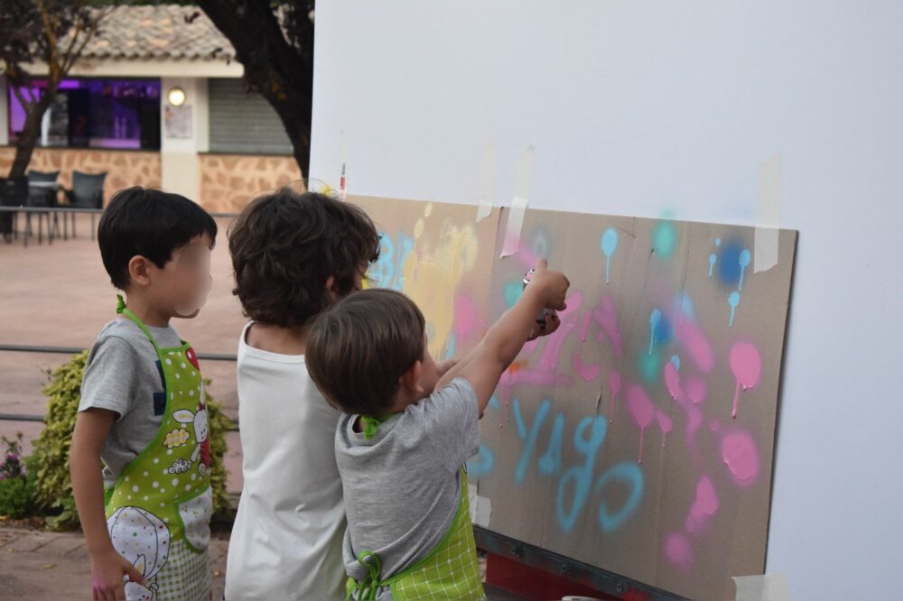 El martes, el taller fue enfocado a un público infantil, donde decenas de niños quisieron aprender las tácticas del graffiti de la mano del artista, y aprendieron a hacer plantillas y dibujos en las zonas habilitadas. Además, para el disfrute de los pequeños de una manera segura y saludable, se dispuso a los aprendices de materiales seguros para ellos.