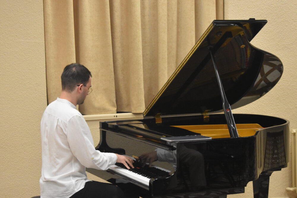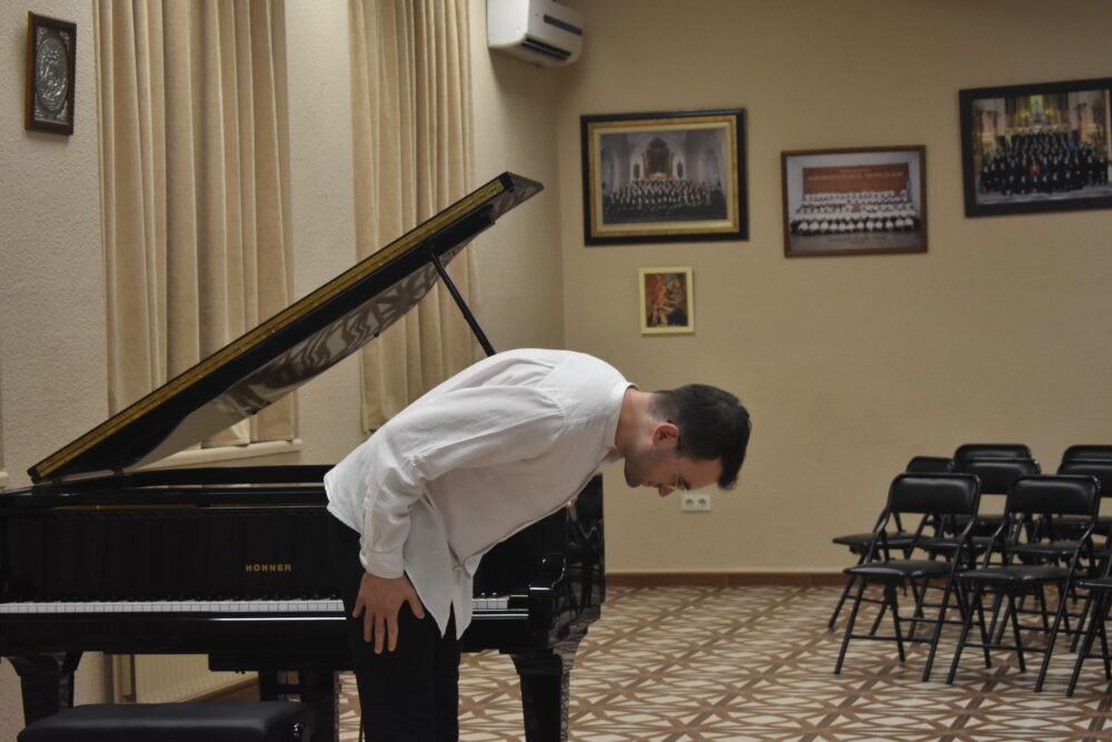 De esta manera, interpretó tres romanzas del alemán Robert Schumann y al francés Claude A. Debussy. Seguidamente, honró a la Directora Consuelo Díez con “Preludio Americano”, obra de la artista de carácter más contemporáneo, así como “Nada” del artista Jesús Torres, ambas piezas dentro del primer álbum ya grabado por el joven, “Preludios para un joven pianista”.