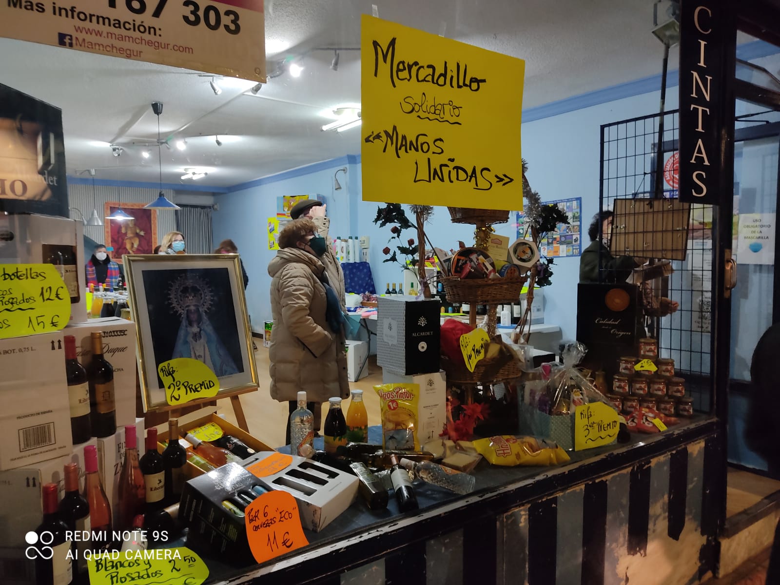 Por segundo año consecutivo, en el mercadillo se ponen a la venta productos alimenticios y de higiene donados por empresas locales y de la comarca, además de las papeletas para la tradicional rifa de regalos.