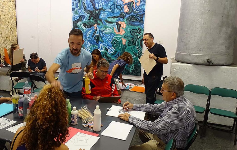 Dentro del programa de actividades organizadas con motivo del XVIII Encuentro de Artistas Espacio-Arte El Dorado, la mañana del sábado, estaba dedicada a un Taller de Creatividad impartido por el artista Mario Vela bajo el título “Vamos a pintar un rostro expresionista”.