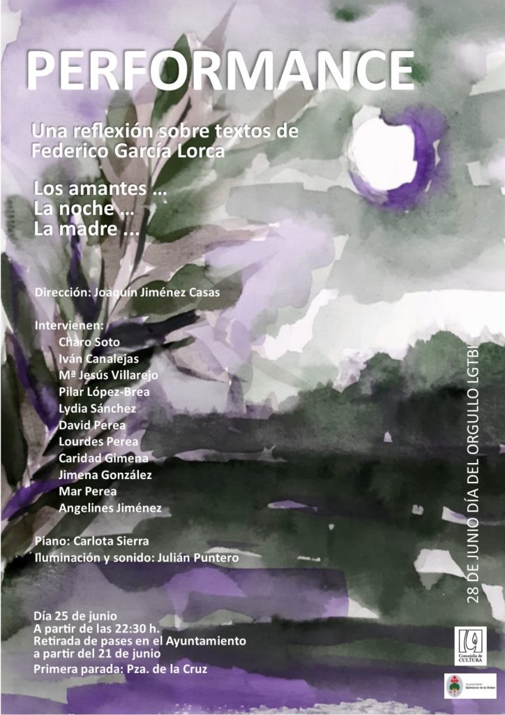El próximo 25 de junio a las 22.30 horas tendrá lugar una performance a cago del grupo de teatro dirigido por Joaquín Jiménez Casas. Se llevará a cabo al aire libre en distintos escenarios del municipio.