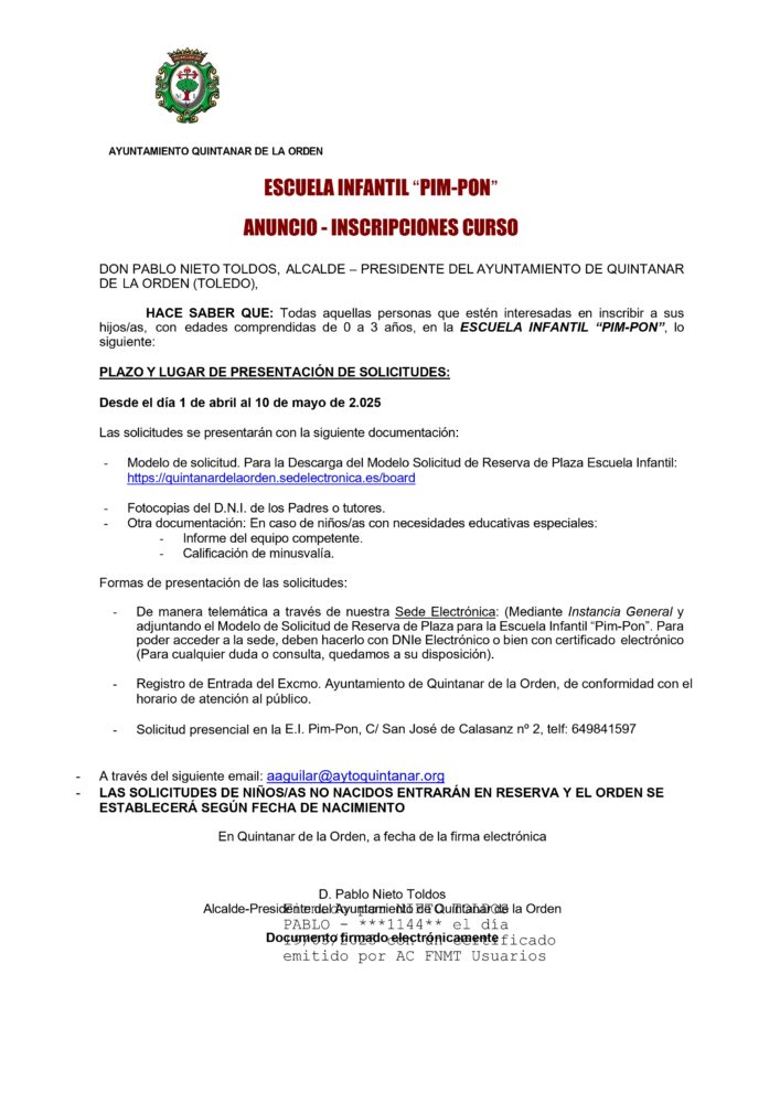 Toda la información y pliegos están disponibles en el Perfil del Contratante del Ayuntamiento.