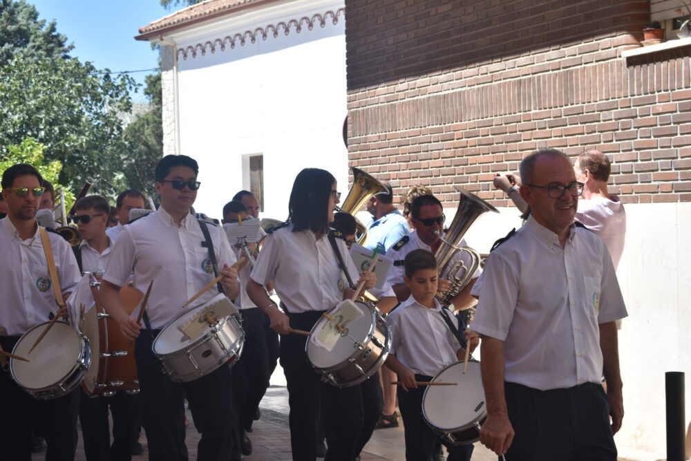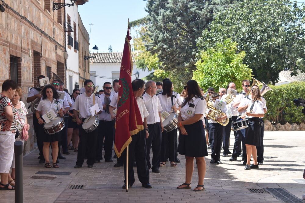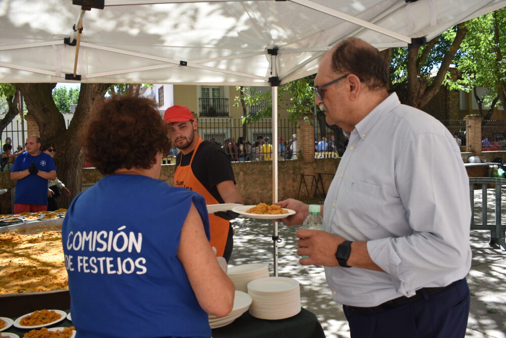 A la salida, la Banda Sinfónica Municipal dirigida por D. Sebastián Heras Romero les esperaba para dar comienzo al Pasacalles, que ha desfilado por las calles de la localidad hasta la Plaza de las Palomas, donde tiene lugar el Baile del Vermut y los presentes han podido disfrutar de algo fresquito mientras se esperaba a la gran paella.