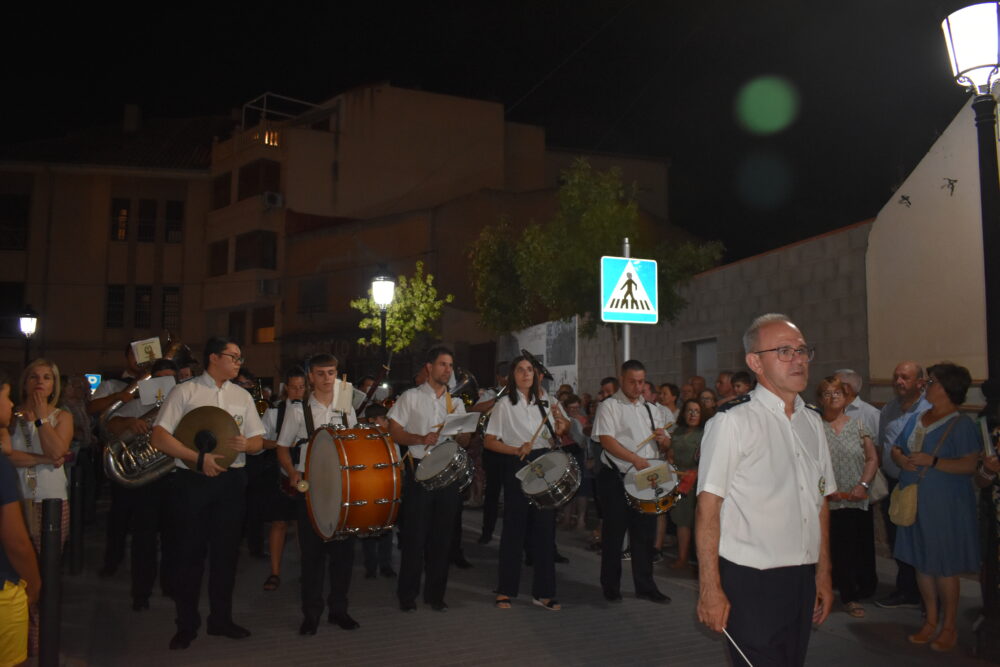 Seguidos por las Autoridades Religiosas y Civiles y la Banda Sinfónica Municipal de Quintanar, dirigida por D. Sebastián Heras Romero, la Santa Imagen procesionó por las calles hasta llegar a la Plaza de la Constitución, donde también fue recibida por una gran traca. Finalmente, Ntra. Sra. de la Piedad se dirigió a la Iglesia “Santiago de la Espada”, siempre arropada por centenares de vecinos, donde se establecerá durante los próximos nueve días, hasta el inicio de la Feria y Fiestas 2025.