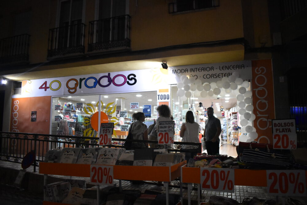 En una noche que ha recibido una gran acogida por parte de todos los vecinos locales y de otros pueblos de la comarca, han estado presentes también los DJs del Electronic Music Time, que han amenizado la tarde y noche de los visitantes con música y buen ritmo en una jornada donde el tiempo y las temperaturas han ayudado y acompañado a que todos aquellos que quisieran comprar fuera de los horarios habituales pudieran hacerlo.