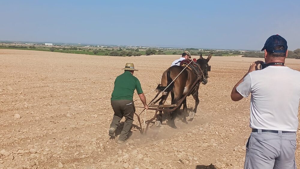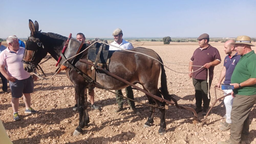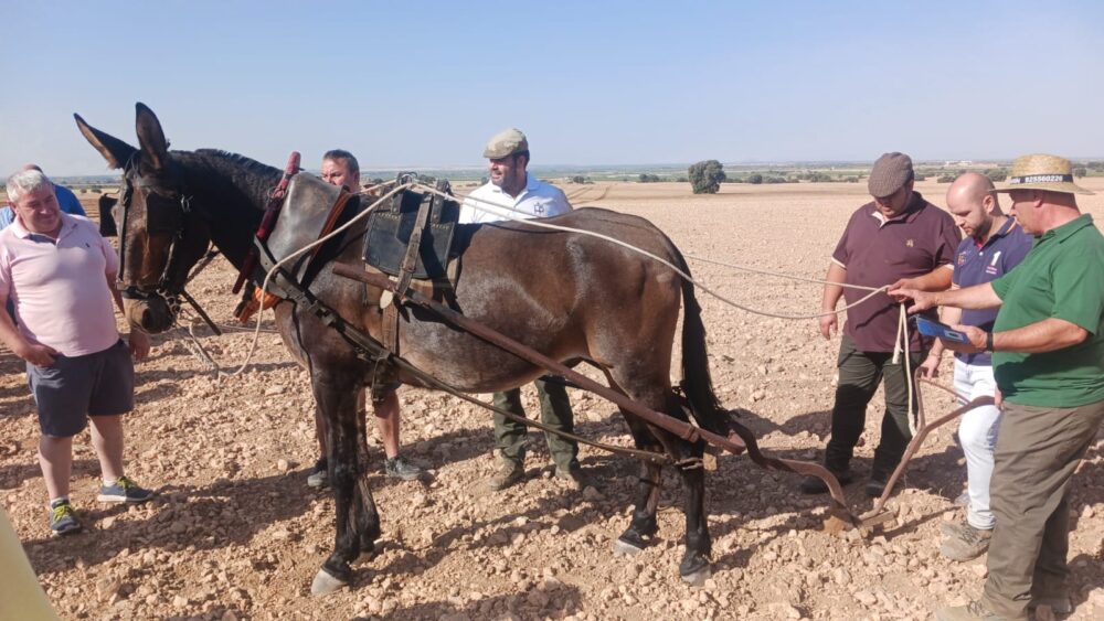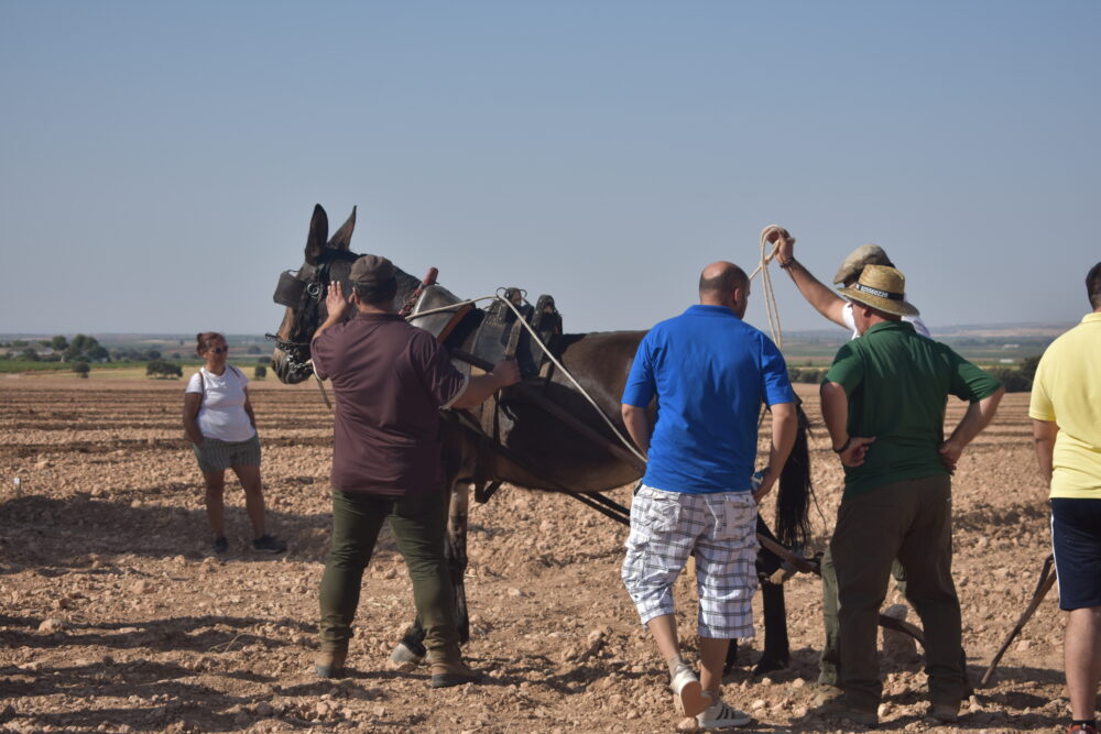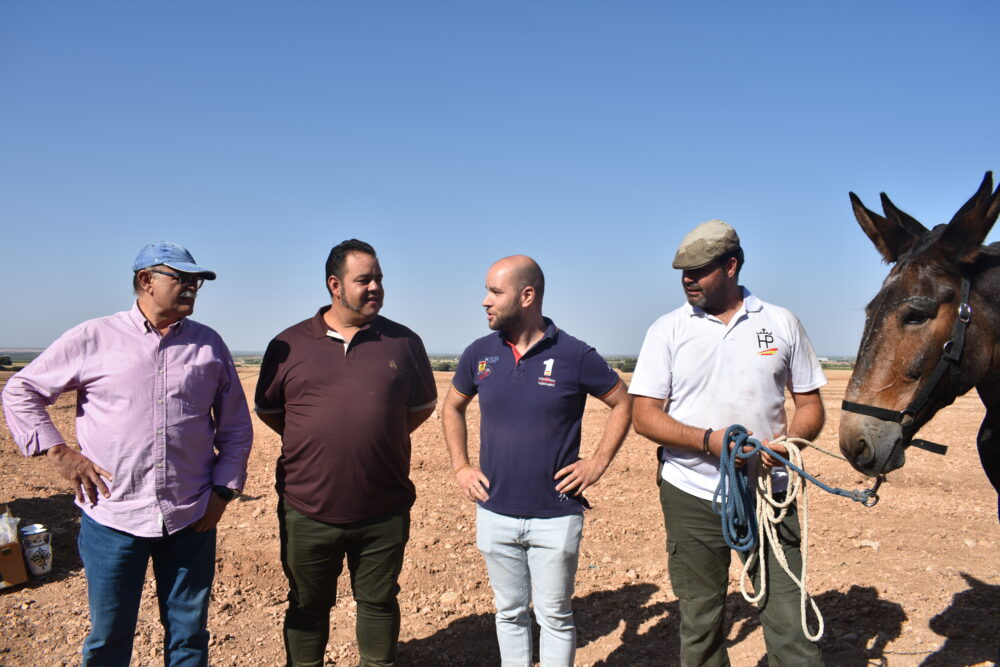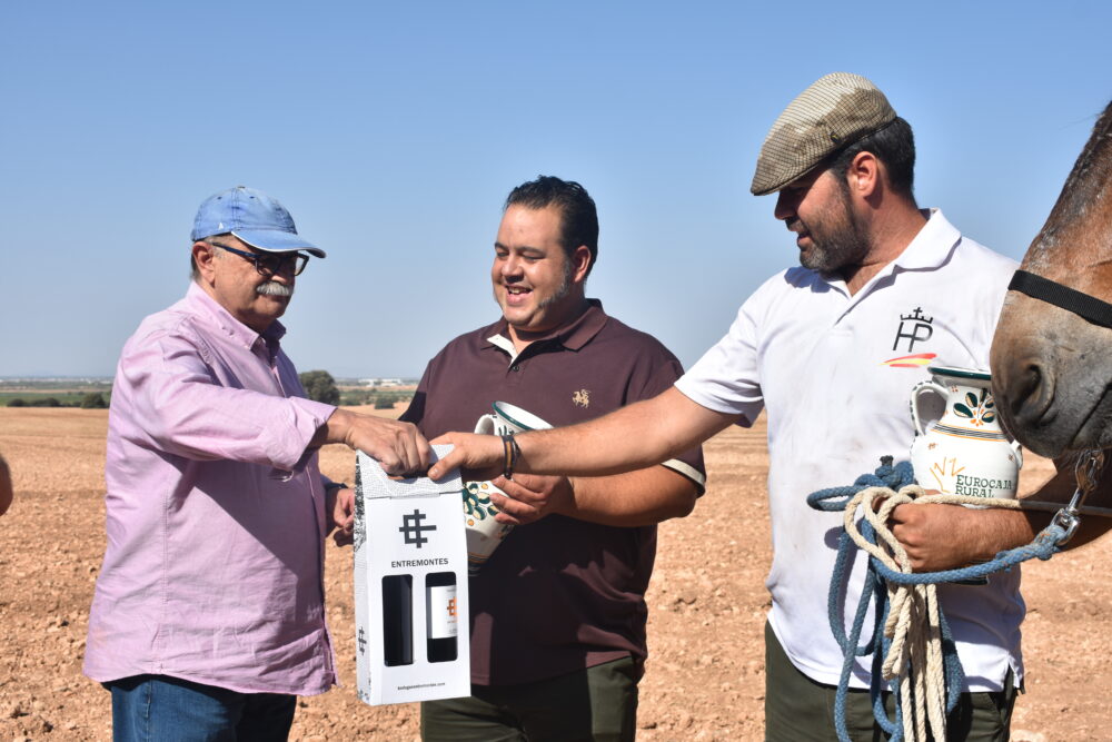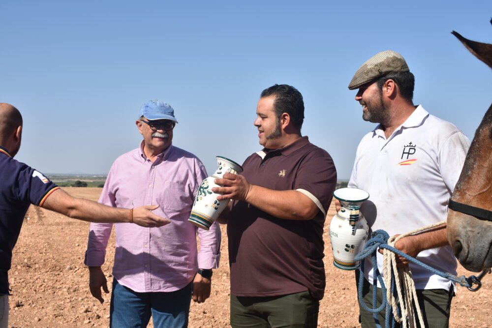 Posteriormente, comenzaba la primera edición del Concurso Exhibición de Corte con Mulas, con éxito de participación en una mañana que no ha querido perderse el Concejal de Agricultura Juan Carlos Sánchez Vela, que se ha unido a los participantes y ha rememorado la tradición mostrando sus habilidades. Además, la organización ha contado con la colaboración de Mulillas Hermanos Peinado, que ha prestado las mulas para la exhibición, y que han recibido de la mano del Alcalde, D. Pablo Nieto Toldos y el Concejal de Agricultura, además de varios miembros de la Corporación Municipal que estaban presentes, un obsequio por su colaboración y predisposición.