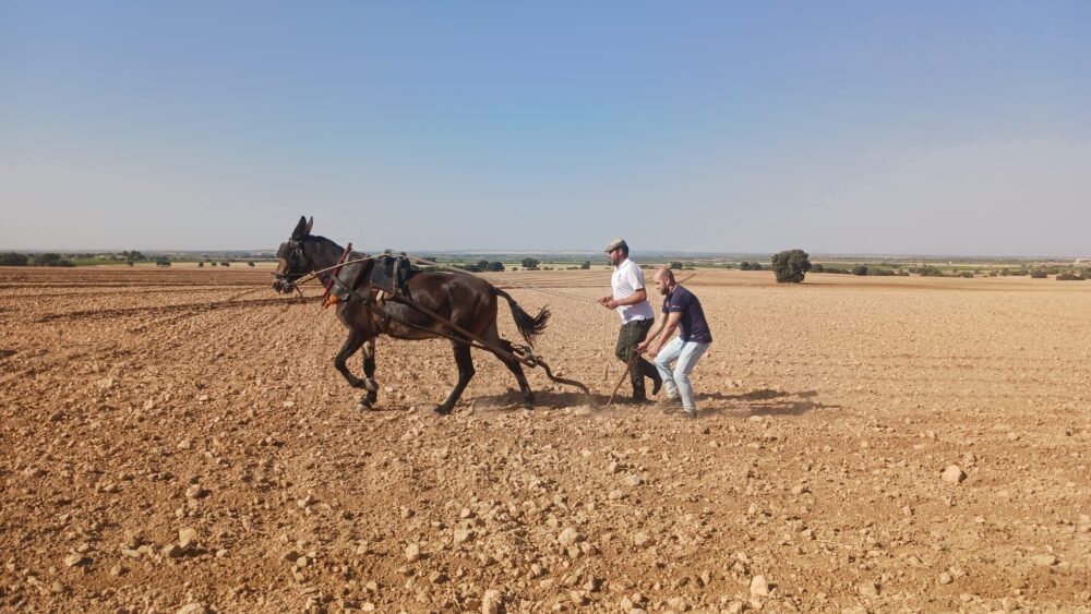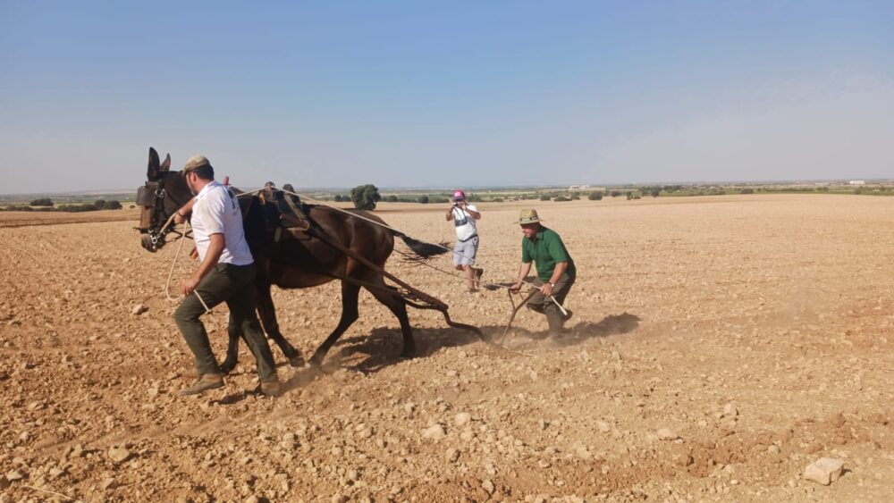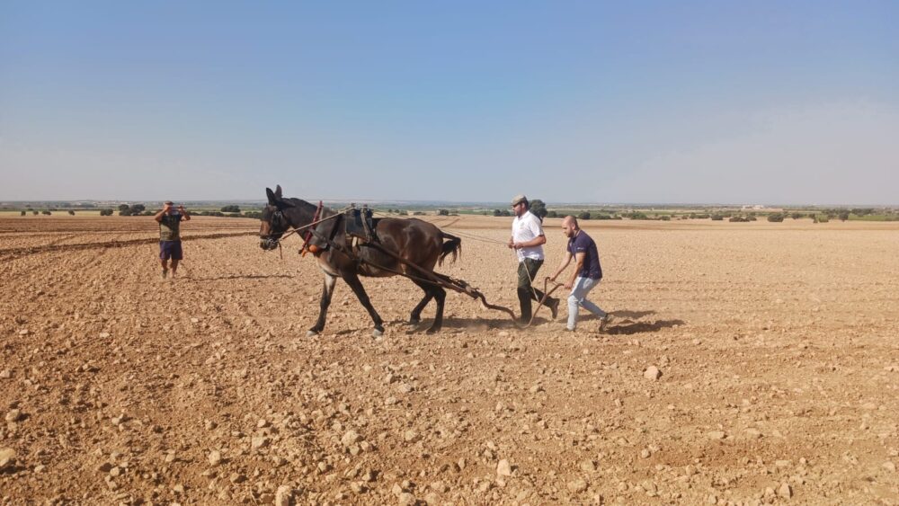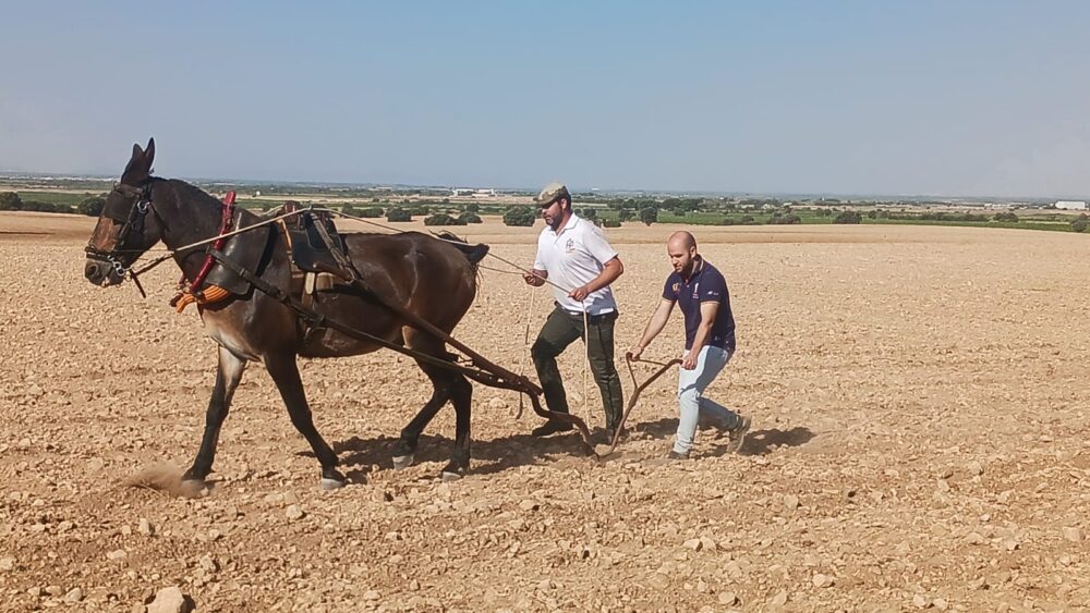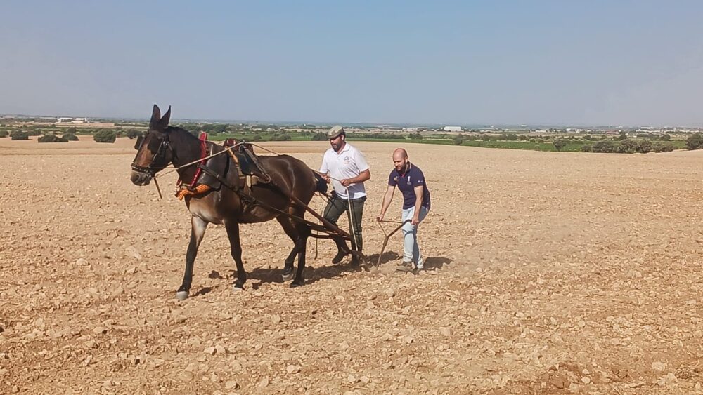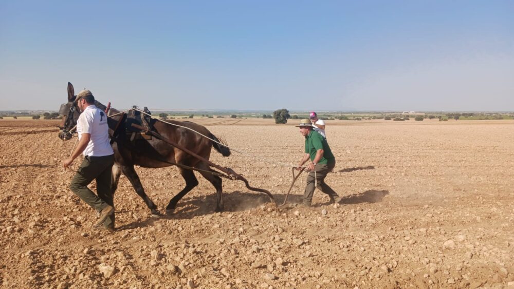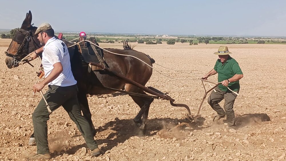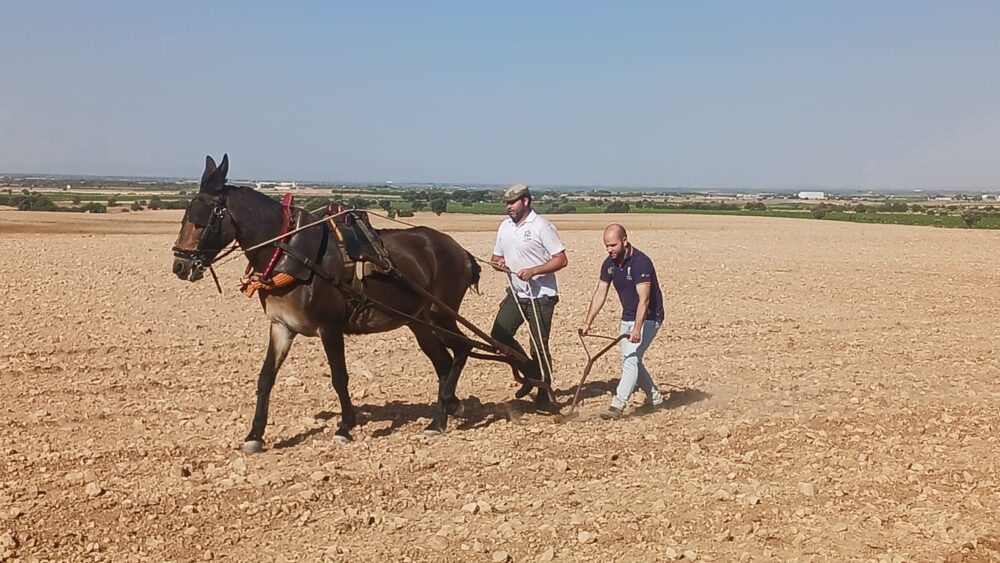 Posteriormente, comenzaba la primera edición del Concurso Exhibición de Corte con Mulas, con éxito de participación en una mañana que no ha querido perderse el Concejal de Agricultura Juan Carlos Sánchez Vela, que se ha unido a los participantes y ha rememorado la tradición mostrando sus habilidades. Además, la organización ha contado con la colaboración de Mulillas Hermanos Peinado, que ha prestado las mulas para la exhibición, y que han recibido de la mano del Alcalde, D. Pablo Nieto Toldos y el Concejal de Agricultura, además de varios miembros de la Corporación Municipal que estaban presentes, un obsequio por su colaboración y predisposición.