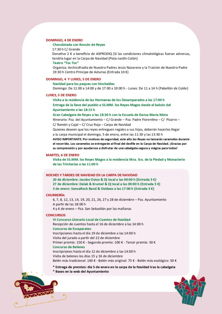 Por su parte, Antonio de la Guía avanzó la programación juvenil y festiva en la carpa municipal, que contará con dos grandes noches de fiesta con DJs y artistas locales, además de un tardeo especial por Reyes. El concejal anunció igualmente la puesta en marcha del VI Concurso Literario de Cuentos de Navidad, así como los concursos de escaparates y belenes, que este año incorporan nuevas modalidades y cuyos premios serán entregados por los propios Reyes Magos el 5 de enero.