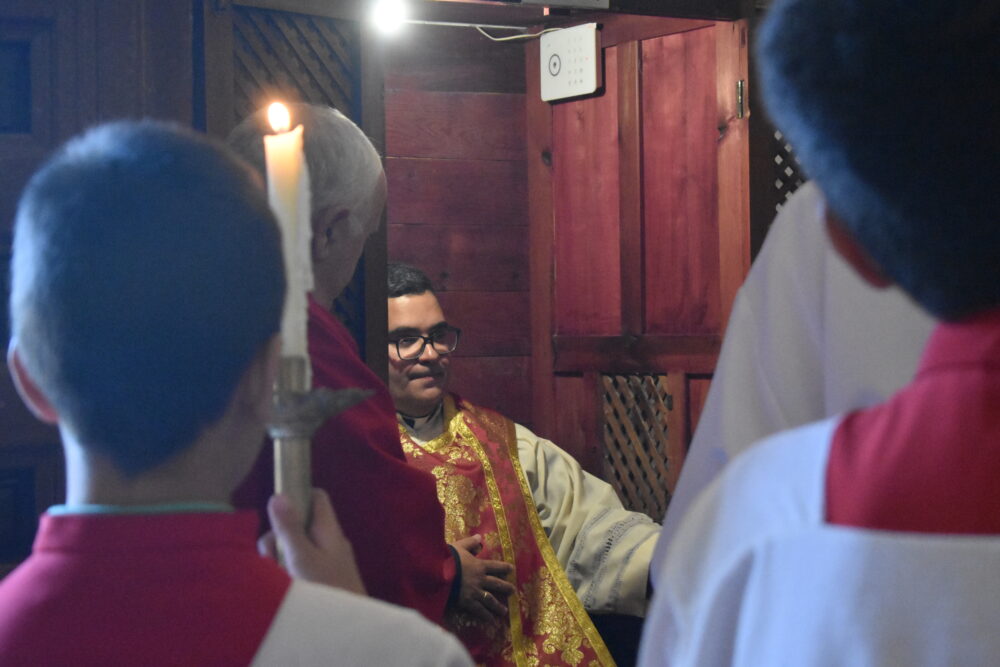 Posteriormente, tuvo lugar la renovación de las promesas de la ordenación, donde terminada la homilía, el Párroco se sitúa delante del Vicario Episcopal y renueva las promesas que hizo en su ordenación. Después, se organizó una procesión precedida del turiferario, con la cruz, candelas y ministros, en la que el Vicario Episcopal, recorriendo la Iglesia, hizo entrega al nuevo Párroco de los lugares en los que ha de desempeñar sus funciones: la Sede Penitencial, la Pila Bautismal y la Capilla del Santísimo Sacramento.