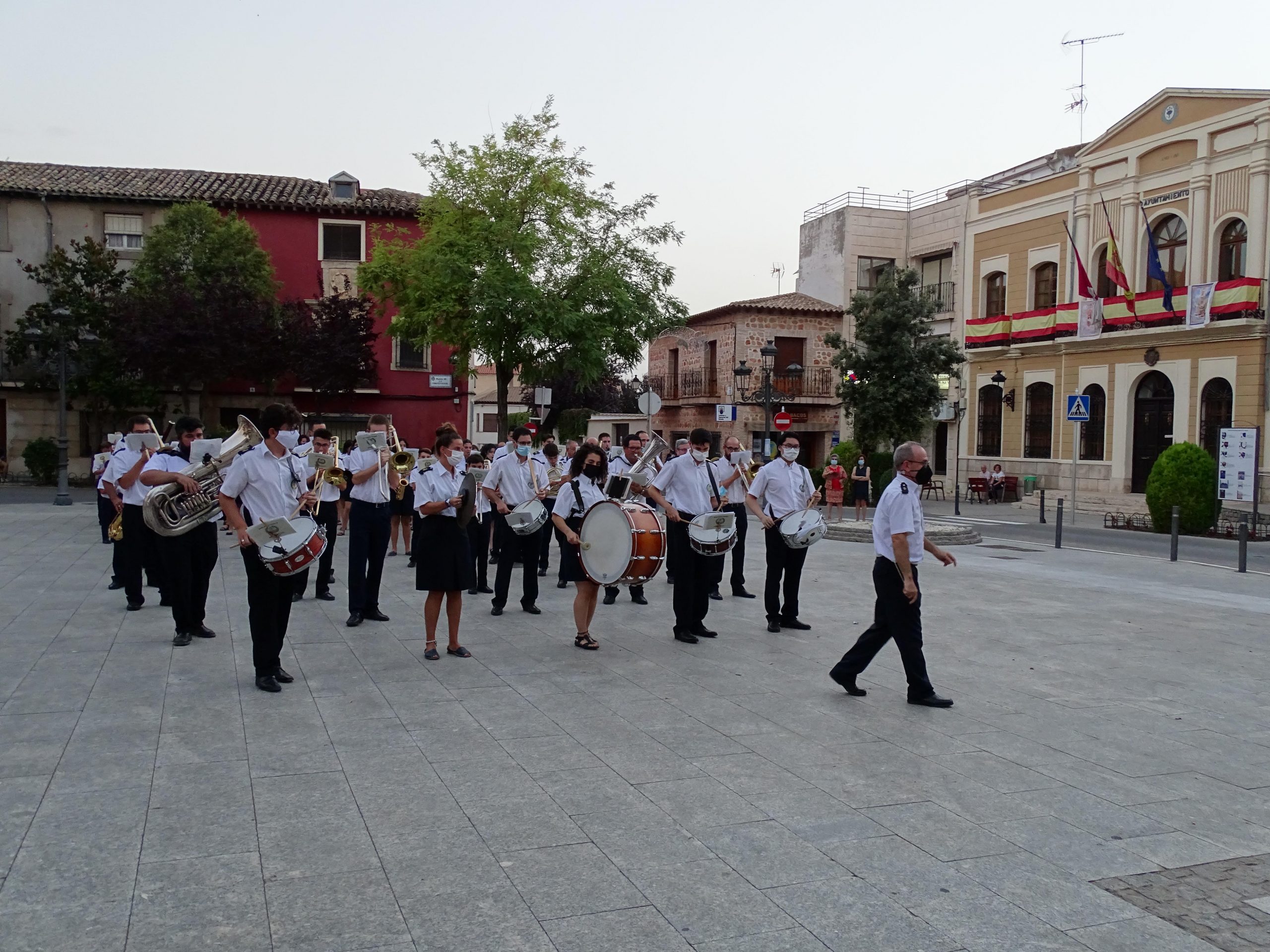 La música será una de las protagonistas durante las fiestas de Quintanar de la Orden en honor  a la patrona la Virgen de la Piedad. Así, el que tenía que haber sido el día de la inauguración de las mismas, el 14 de agosto, a pesar de celebrarse el acto del pregón y la coronación debido a la pandemia, la Banda Sinfónica Municipal llevó alegría por las calles de la localidad.