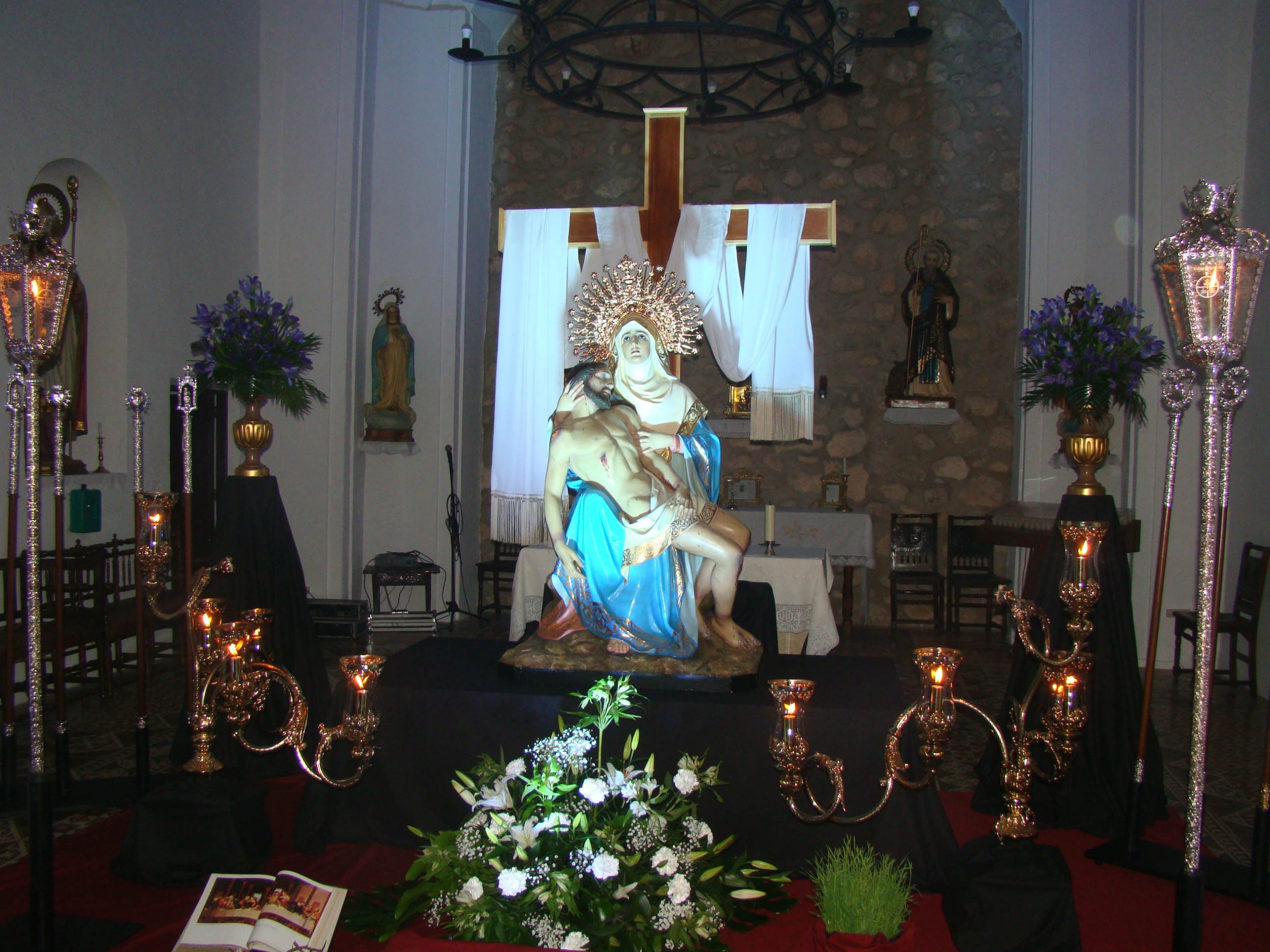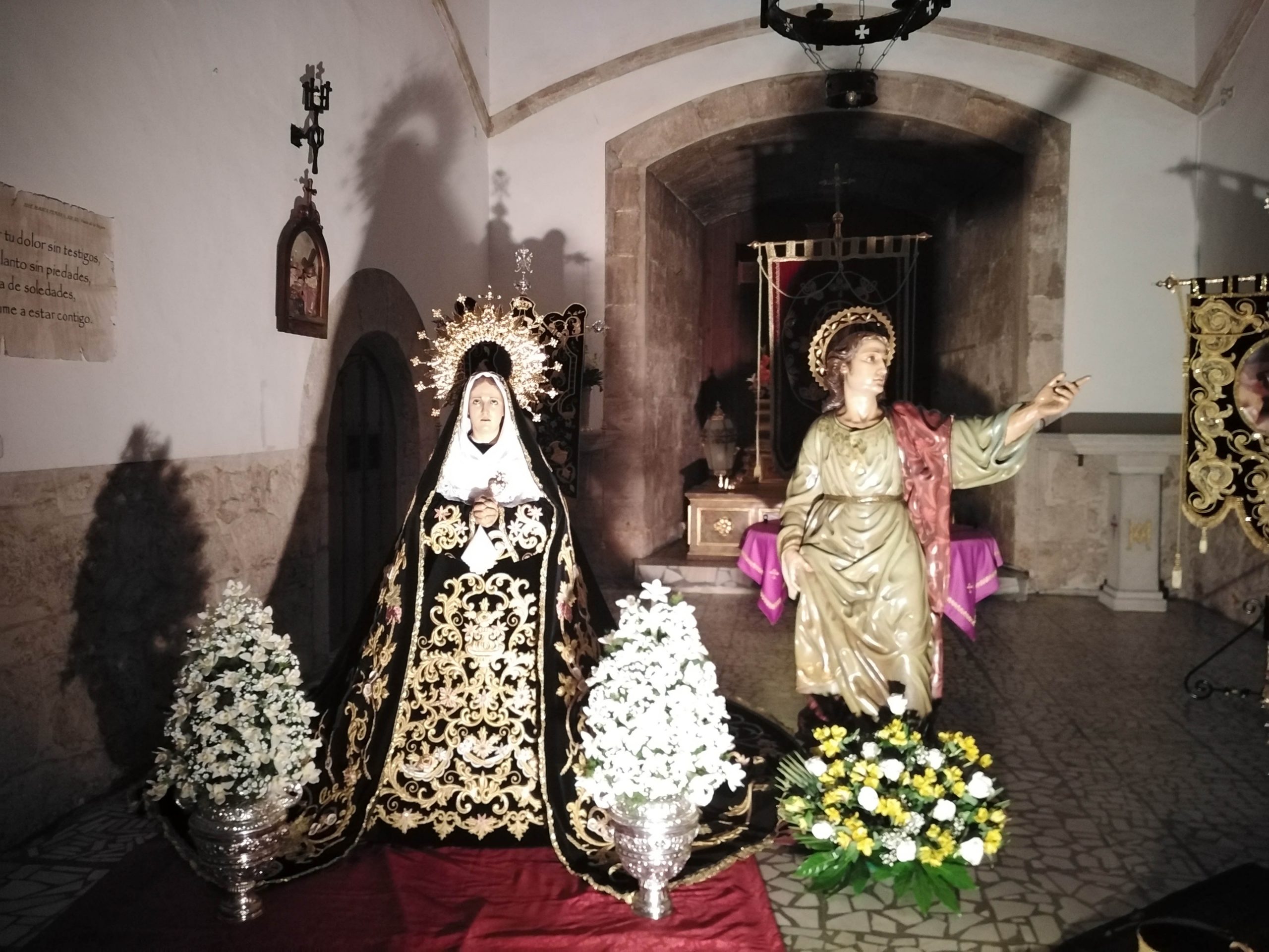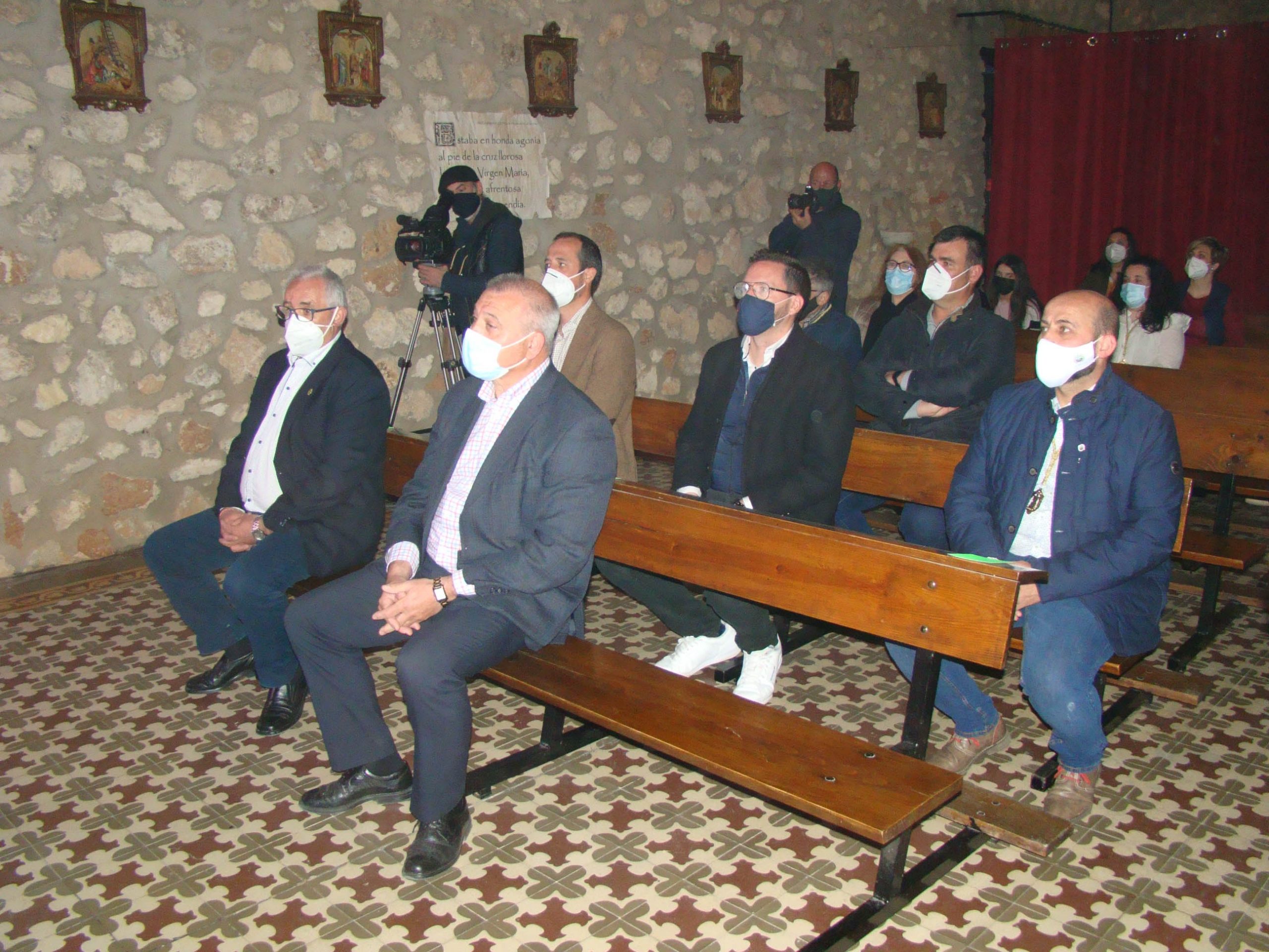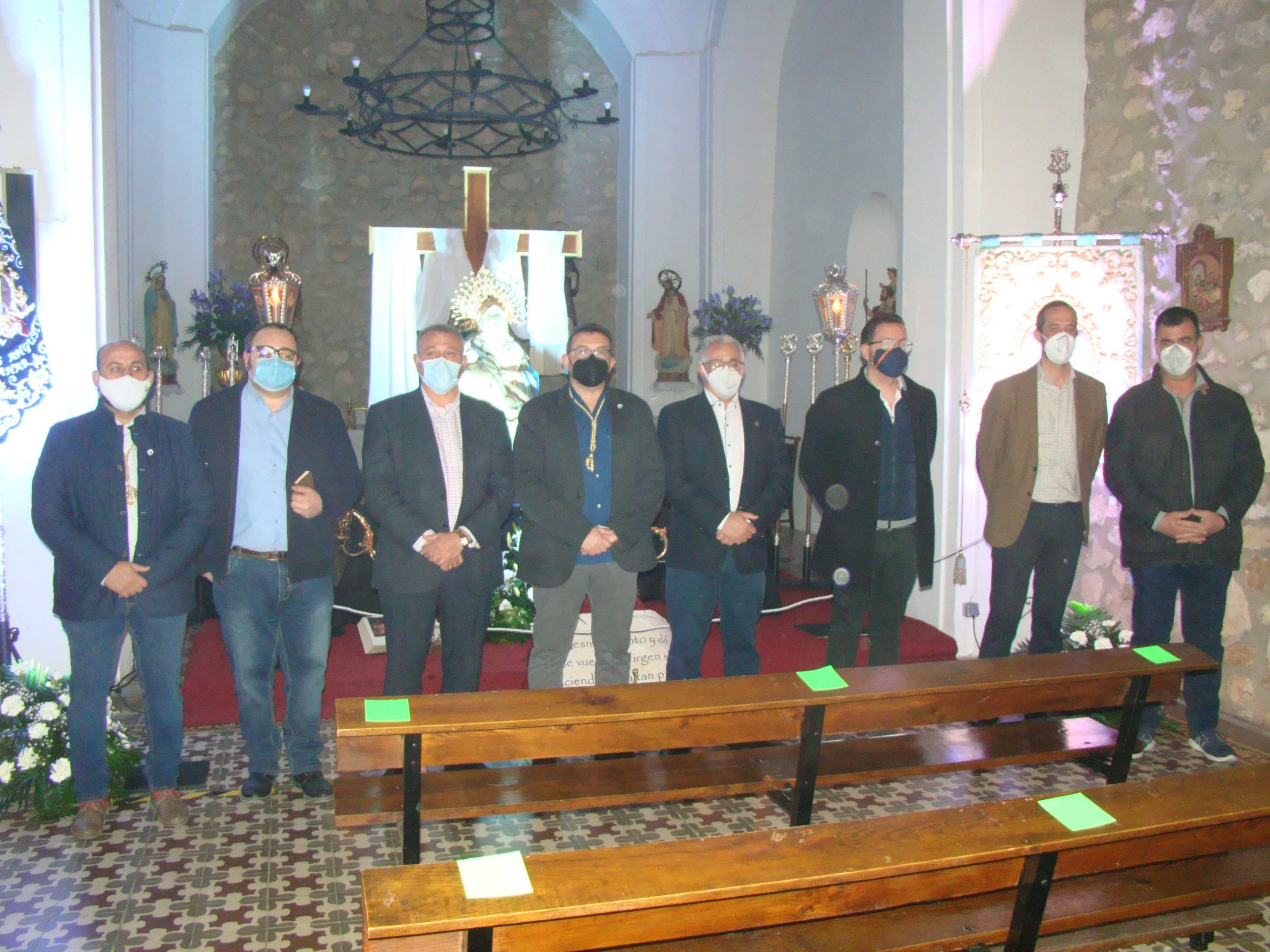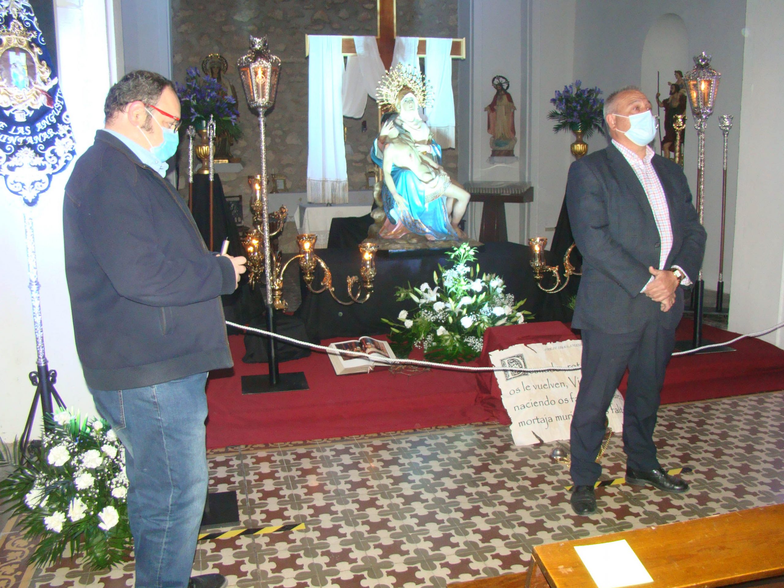 Precisamente el viernes, 26 de marzo, abría sus puertas la ermita de San Antón donde se han instalado los titulares de la Cofradía Virgen de las Angustias, Cristo de la Columna y Virgen Dolorosa. Un acto que contó con la presencia del presidente de dicha Cofradía y otros miembros de la misma; el presidente de la Junta de Cofradías, Santiago Añover; el primer teniente de alcalde, José María Viller; concejales del grupo Vox, además del vicario parroquial, Francisco Aparicio que se encargó de bendecir las nuevas adquisiciones de la Cofradía, concretamente el sudario de y la corona de la Virgen de las Angustias y la saya y el manto de la Virgen Dolorosa. El presidente de la Cofradía informaba, además, que se han restaurado los cetros de los Hermanos Mayores y el Estandarte.