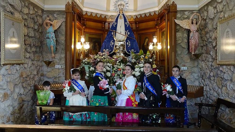 Ya el domingo por la mañana la comitiva partía desde el Convento de los Padres Franciscanos hacia la pradera de San Isidro haciendo una parada en la ermita de la Virgen de Extramuros donde la Reina y Damas hacían una ofrenda floral a la patrona.