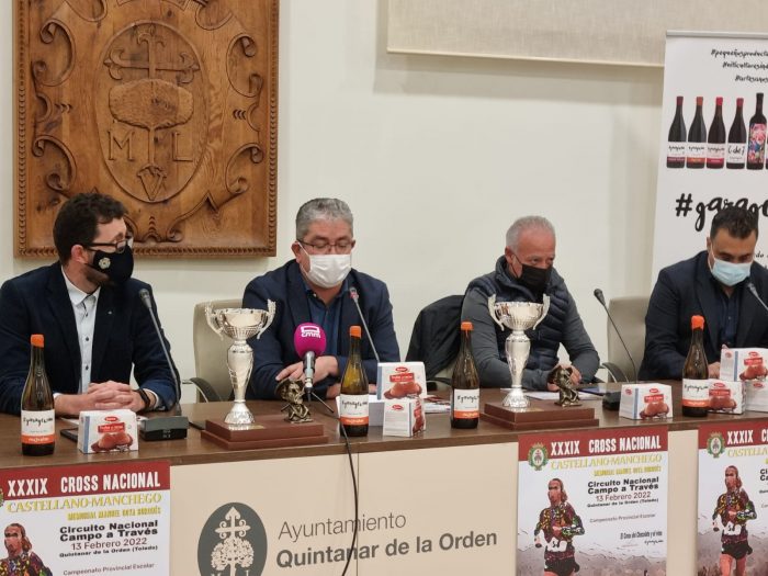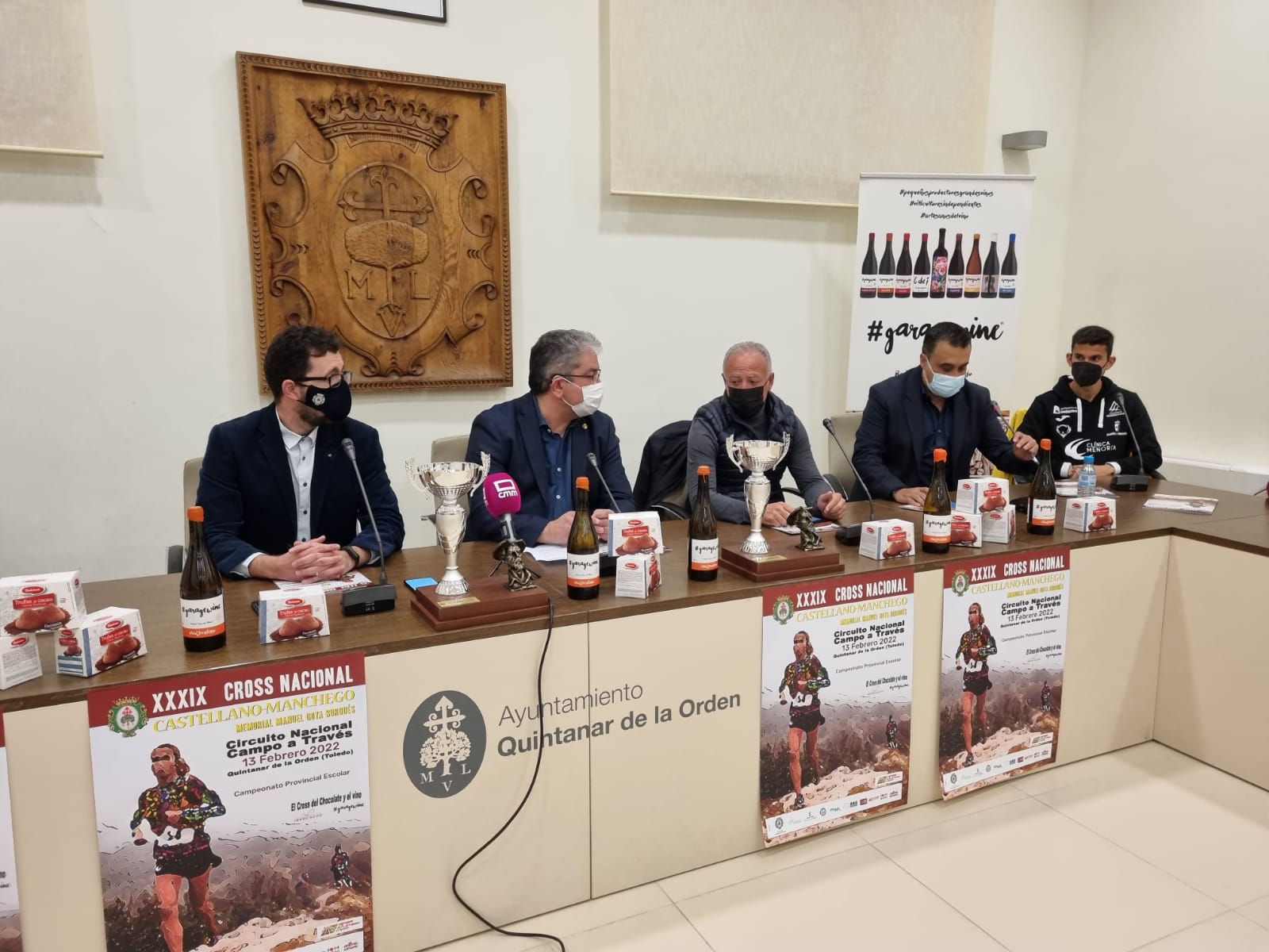 Quintanar de la Orden tiene todo listo para acoger el domingo el XXXIX Cross Nacional Castellano Manchego, conocido popularmente como el Cross del Chocolate, Vino y el Queso. Así lo han confirmado en la tarde de este viernes en la rueda de prensa que se ha celebrado en el Ayuntamiento y que ha contado con la presencia del alcalde, Juan Carlos Navalón; el concejal de deportes; Carmelo Carretero; concejales del equipo de Gobierno; el presidente del Club de Atletismo Manchego, Rafa Villajos; así como atletas; el autor del cartel del Cross, Franz Campoy; patrocinadores y el periodista Alberto Calleja