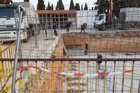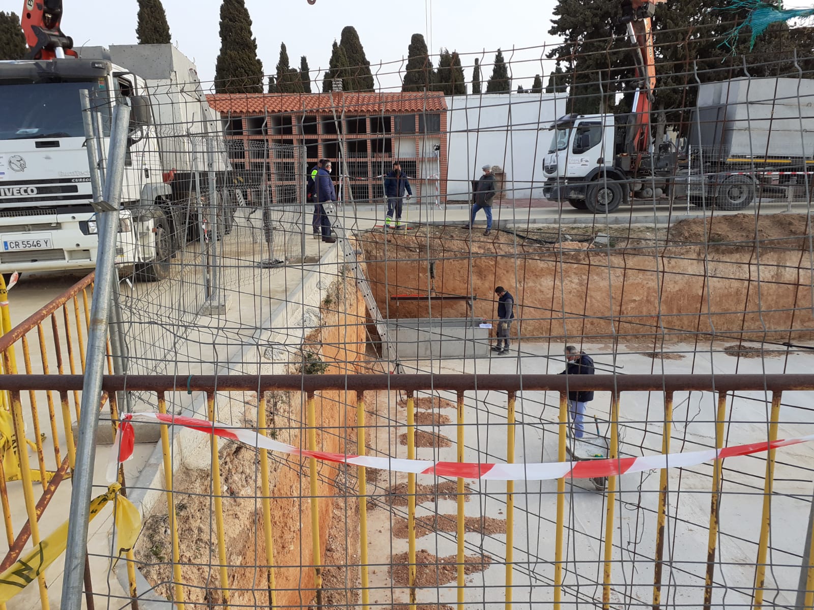 Esta actuación, que se está llevando a cabo en la zona nueva ampliada del cementerio, tendrá un coste aproximado de 34.000 euros y permitirá dotar al Campo Santo de más espacios para poder dar sepultura a quien demande este servicio.