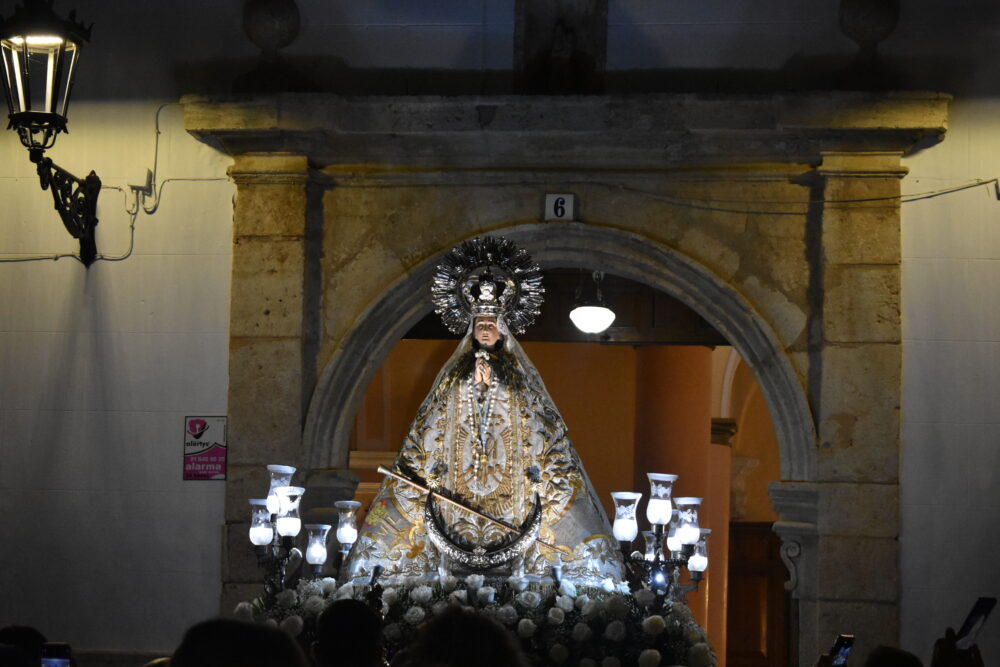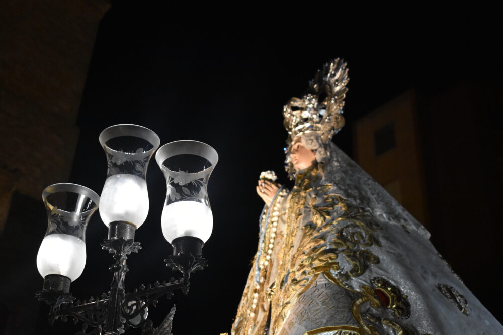 Pasadas las 22:00h de la noche, la Virgen de la Piedad salía acompañada del Mayordomo Mayor, Mayordomos, Camareras y Reina y Damas de las Fiestas por la puerta de la Ermita de Intramuros, donde ha tenido lugar un castillo de fuegos artificiales a la salida. Seguidamente, le acompañaban las Autoridades, cerrando la Procesión con La Banda Sinfónica Municipal, dirigida por D. Sebastián Heras Romero.