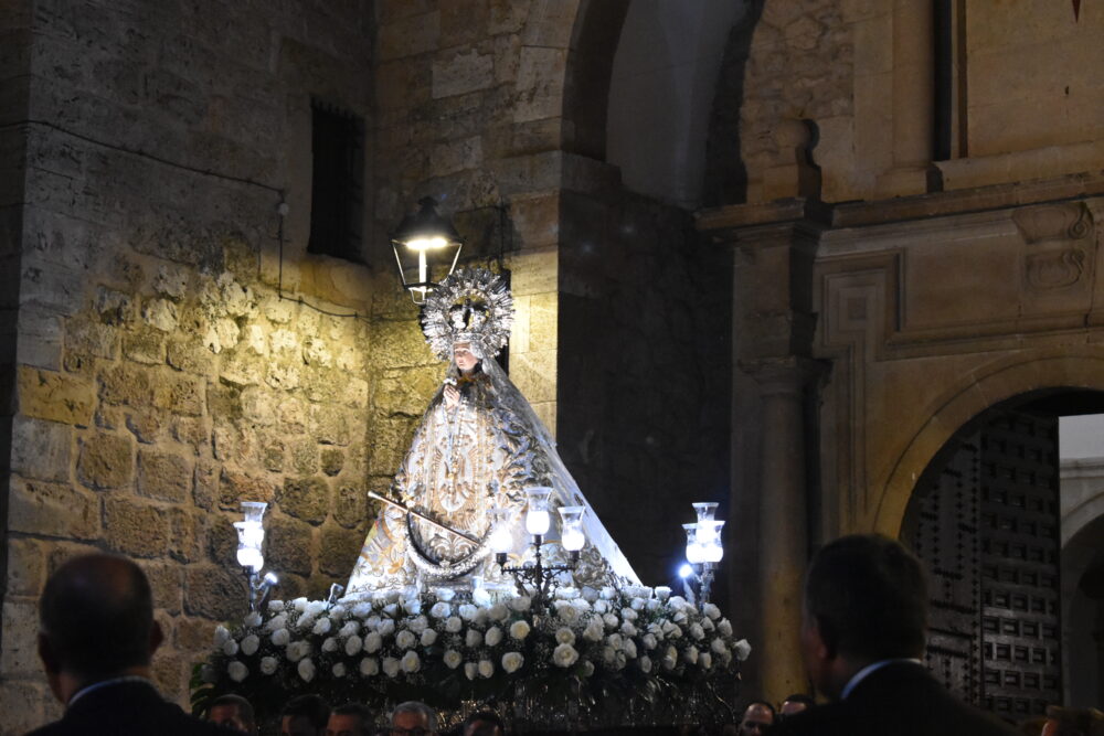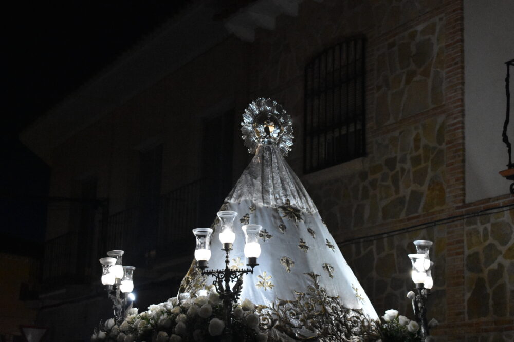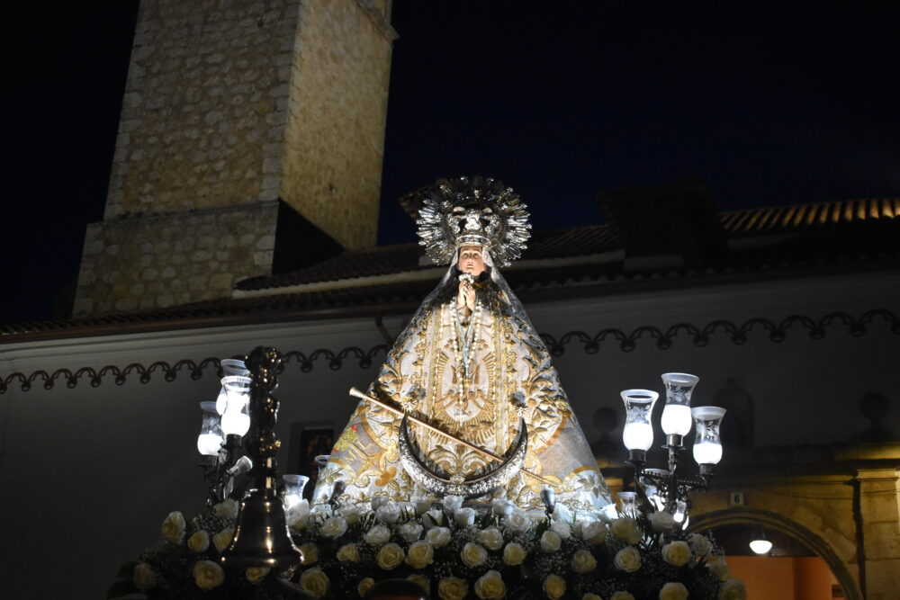 De esta manera, Ntra. Sra. de la Piedad ha sido trasladada por las calles de Quintanar de la Orden, pasando por la Plaza de la Constitución, donde ha tenido lugar de nuevo una sucesión de fuegos artificiales, y llegando al Templo Parroquial, donde, amenizada por el cántico “Dios te Salve María” por parte de la Banda Sinfónica Municipal, entraba por las puertas del Templo Parroquial, donde pasará hasta mañana, que será trasladada en Procesión hasta la Ermita Extramuros.