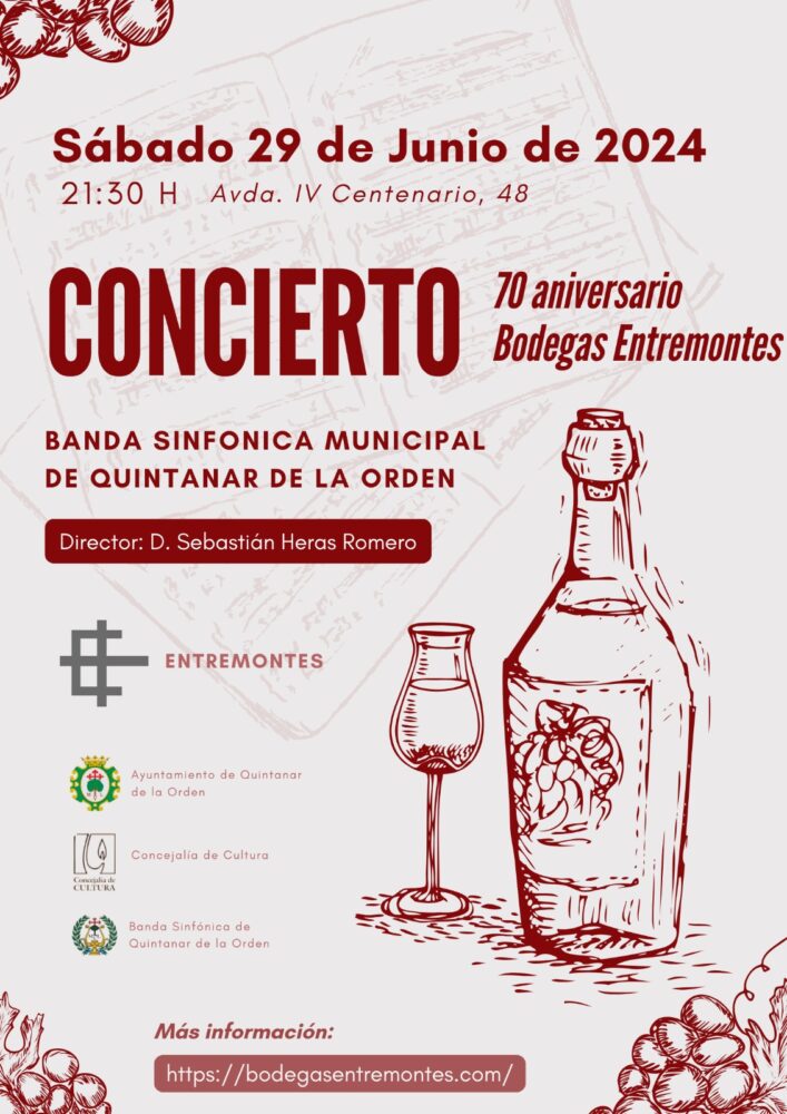 El próximo sábado 29 de junio a las 21:30 tendrá lugar, en Bodegas Entremontes, el Concierto en honor al 70 aniversario de la empresa, a cargo de la Banda...