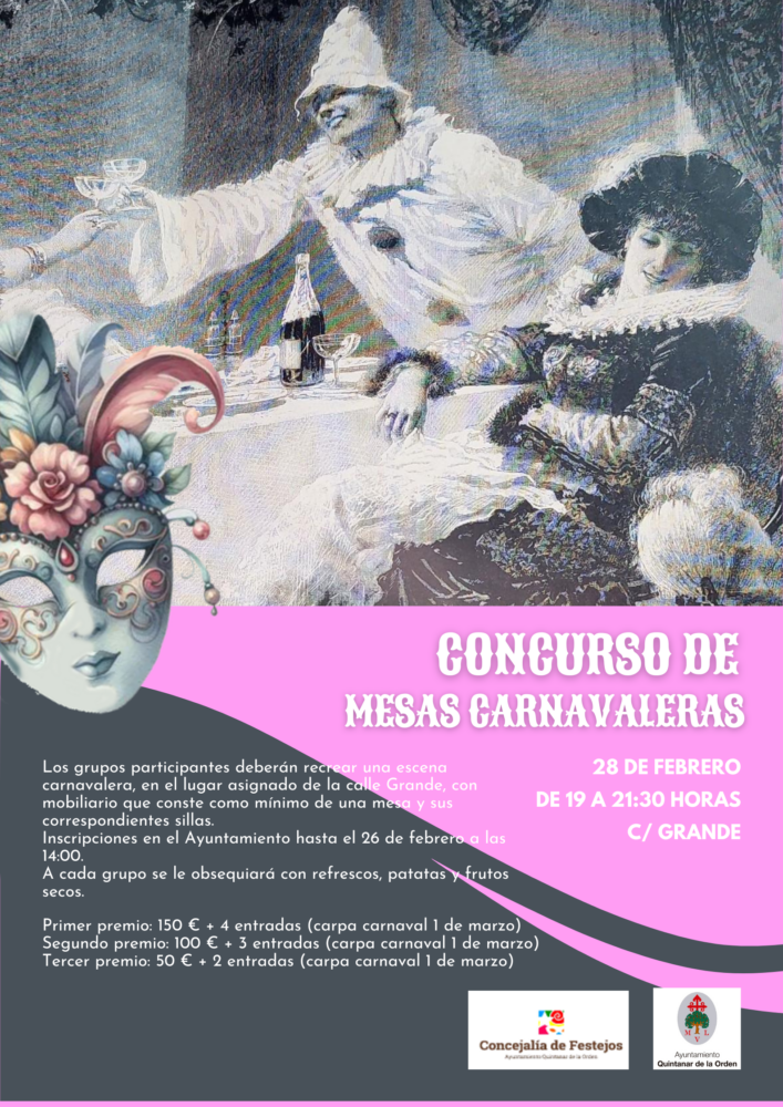 El próximo viernes 28 de febrero de 19:00h a 21:00h se celebrará en la localidad el Concurso de Mesas Carnavaleras, ¡no te lo puedes perder! Los grupos...