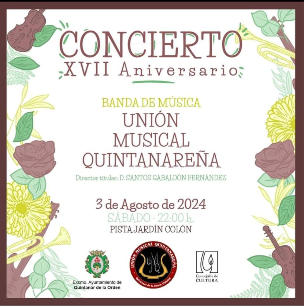 3 agosto 2024 / 22:00 El próximo sábado 3 de agosto la Unión Musical Quintanareña está de celebración por su XVII Aniversario, y lo celebrará con un concierto...