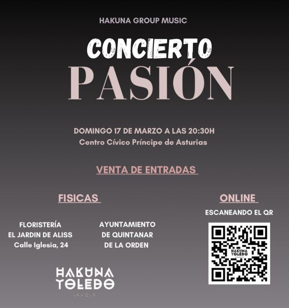 El próximo domingo 17 de marzo a las 20:30h tendrá lugar, en el Centro Cívico Príncipe de Asturias de Quintanar de la Orden, el concierto a cargo de Hakuna...
