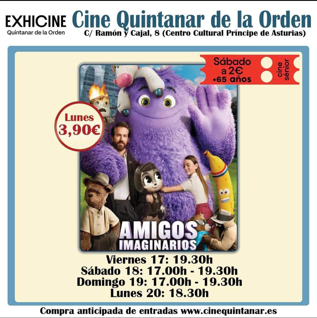 Este fin de semana, Cine Quintanar de la Orden estrenará en su sala la película recién estrenada “Amigos Imaginarios” para los más pequeños de la...
