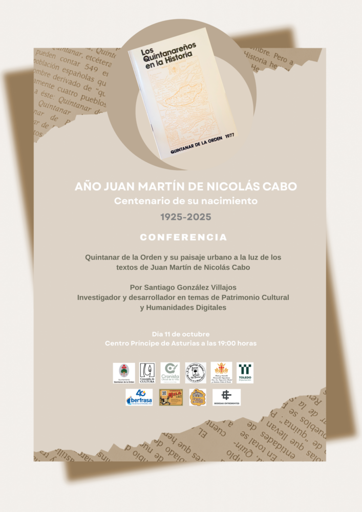 11 octubre / 19:00 Dentro del Año Juan Martín de Nicolás Cabo (1925–2025), se celebrará la conferencia “Quintanar de la Orden y su paisaje urbano a la luz de...