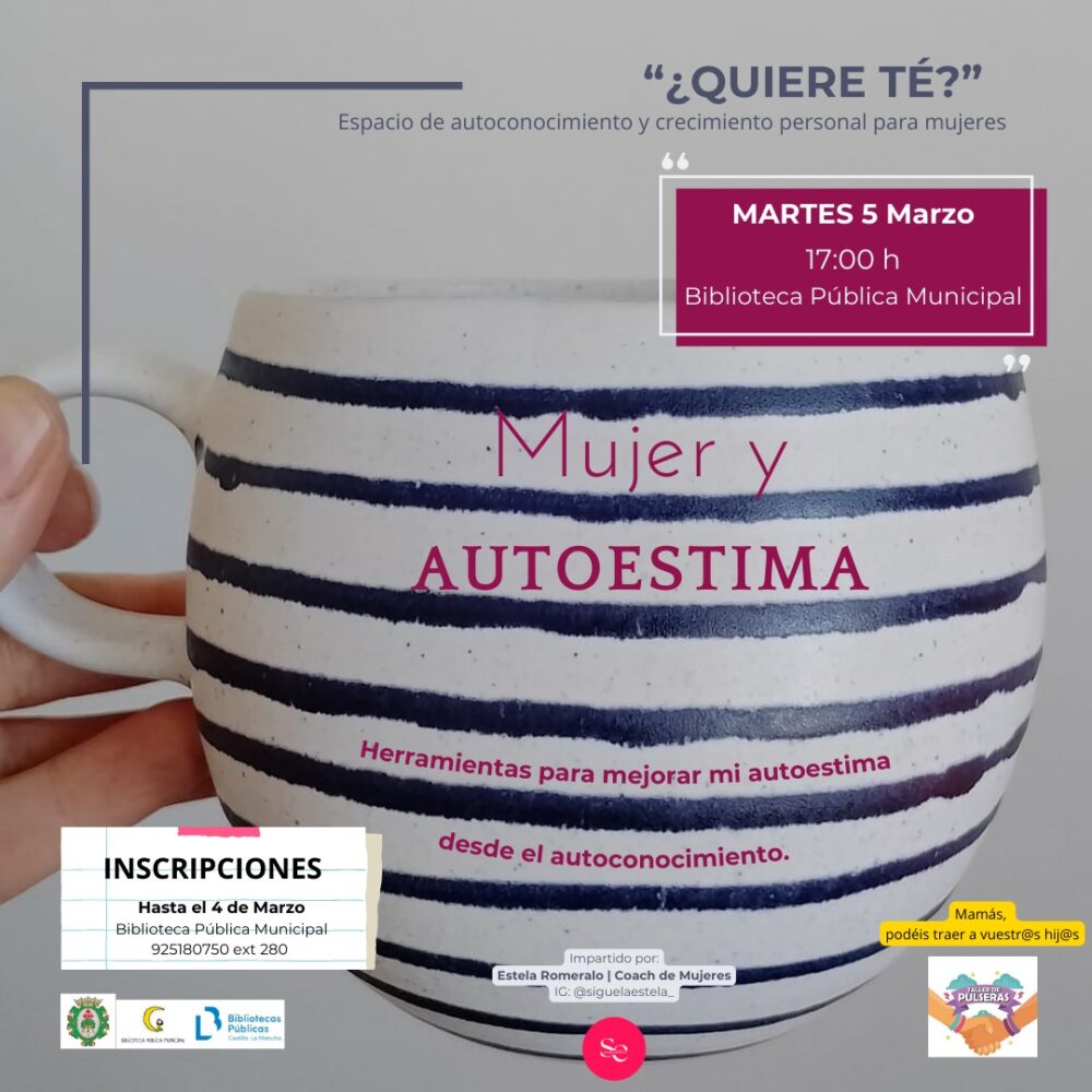 5 marzo 2024 / 17:00 El próximo martes 5 de marzo tendrá lugar a las 17:00 horas en la Biblioteca Municipal la sesión “¿Quiere té?” Mujer y Autoestima, a cargo...