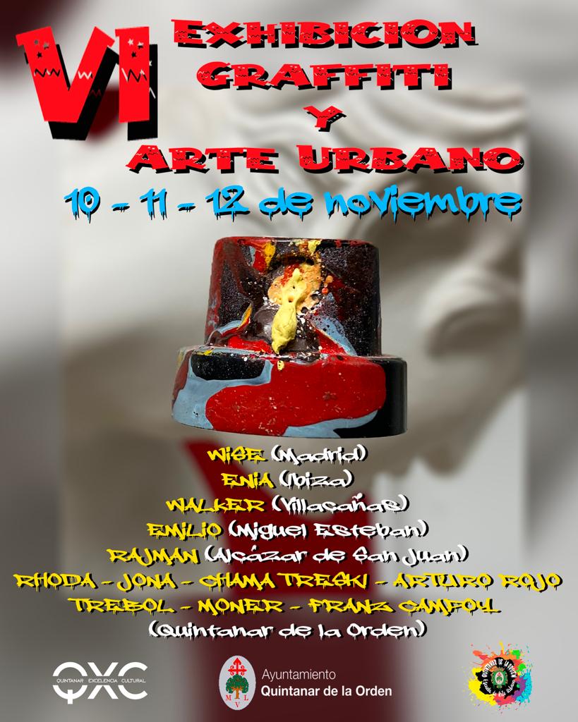 10 noviembre 2023 / 09:00 – 17:00 VI Exhibición Nacional de Graffiti y Arte Urbano en Quintanar de la Orden. 10-11-12 de noviembre de 2023. 12 artistas y...