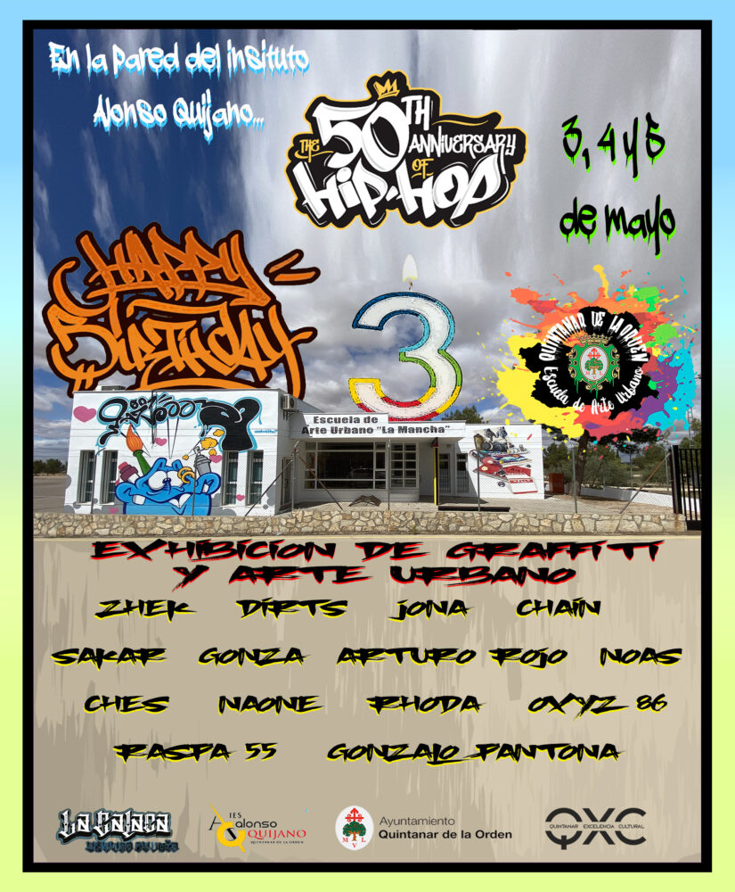 Los próximos 3, 4 y 5 de mayo en la pared del IES Alonso Quijano de Quintanar de la Orden tendrá lugar la Exhibición de Graffiti y Arte Urbano por el 3er...