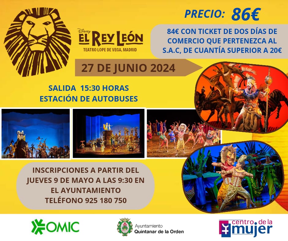 El próximo 27 de junio tendrá lugar la excursión a Madrid para ver el Musical de El Rey León en el Teatro Lope de Vega de Madrid, organizado por el...