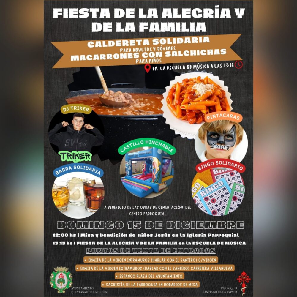 15 diciembre 2024 / 12:00 El próximo domingo 15 de diciembre Quintanar de la Orden tiene una cita en la Fiesta de la Alegría y de la Familia, que celebrará...