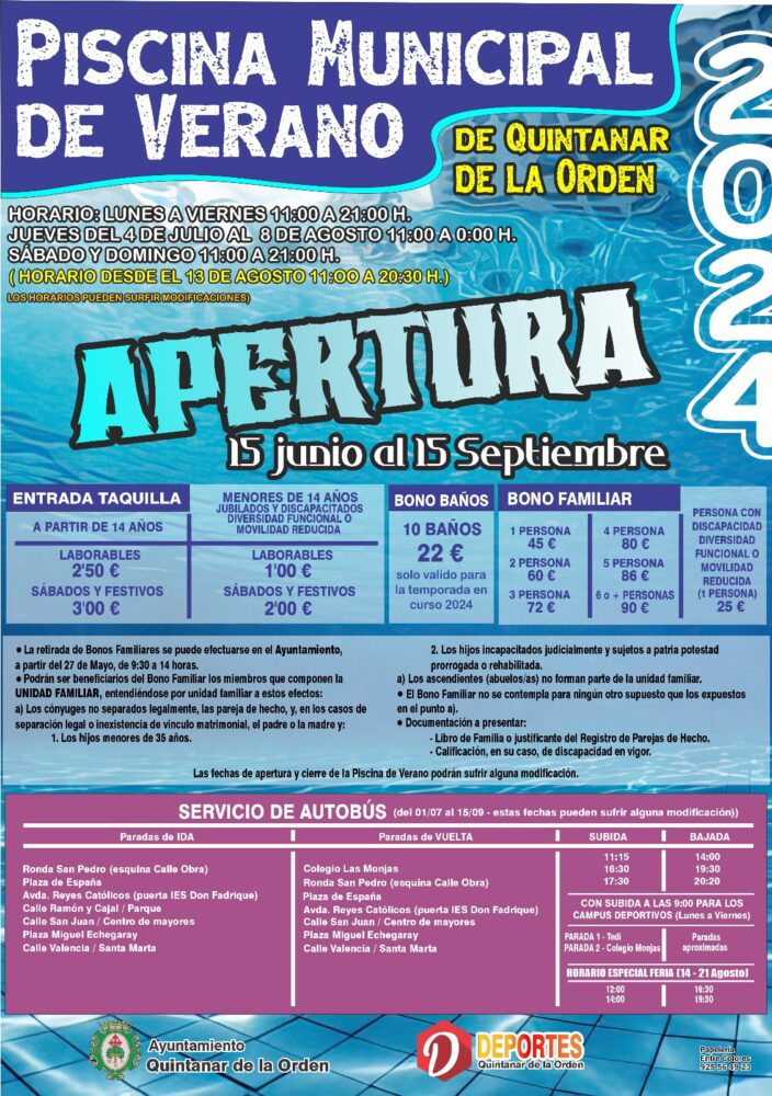 Desde hoy, se abre la Licitación para la gestión de la Piscina de Verano 2024 en Quintanar de la Orden, de la Plataforma de Contratación del Sector Público...