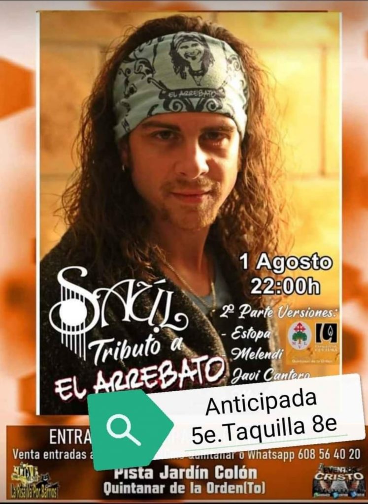 El próximo domingo, 1 de agosto, a las 22.00 horas en la Pista Jardín Colón de Quintanar tendrá lugar el Tributo a El Arrebato.