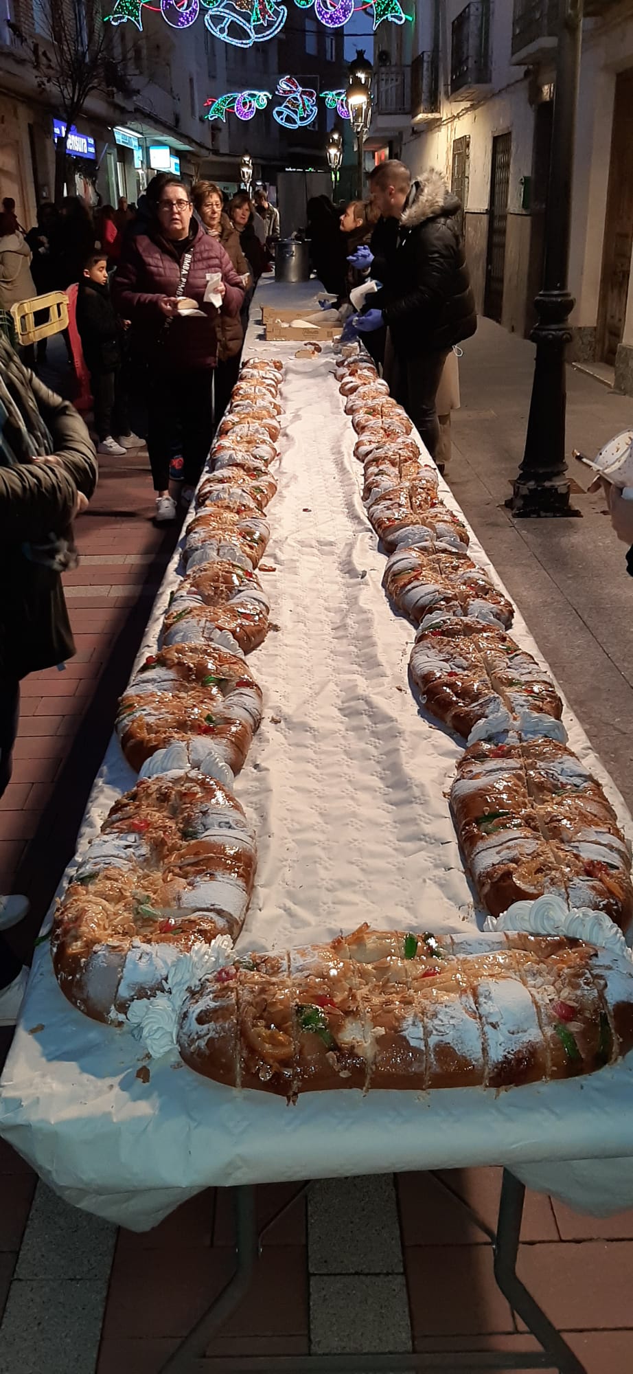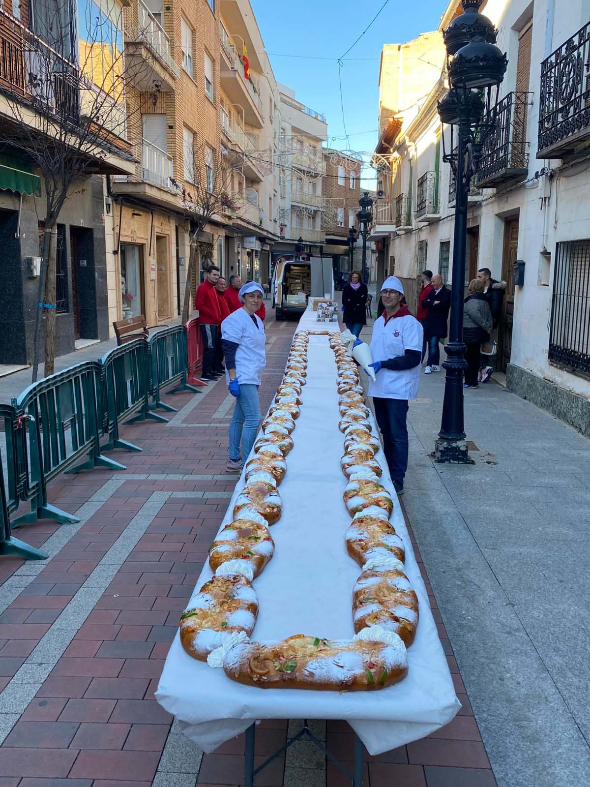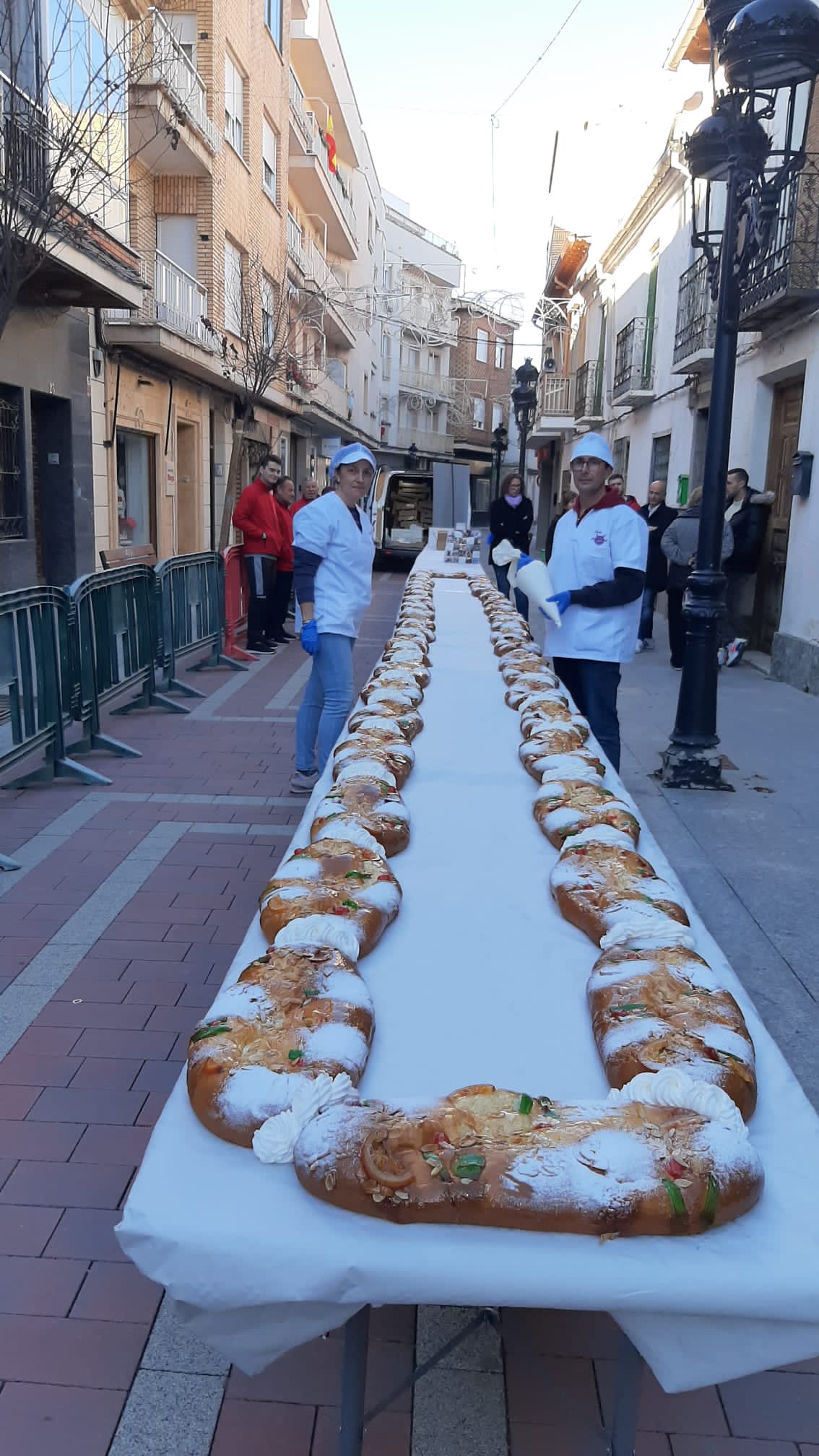 La Panadería Jean de la localidad ha sido la encargada de elaborar los roscones que después han unido entre sí con nata montando un gran roscón de unas 600 raciones..