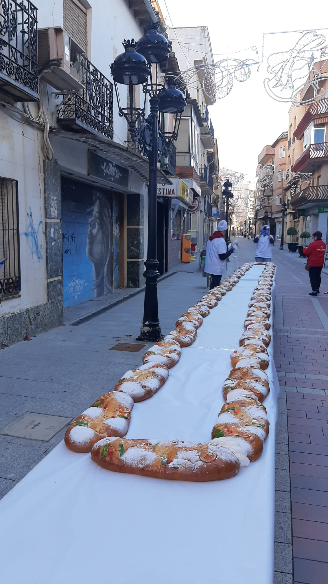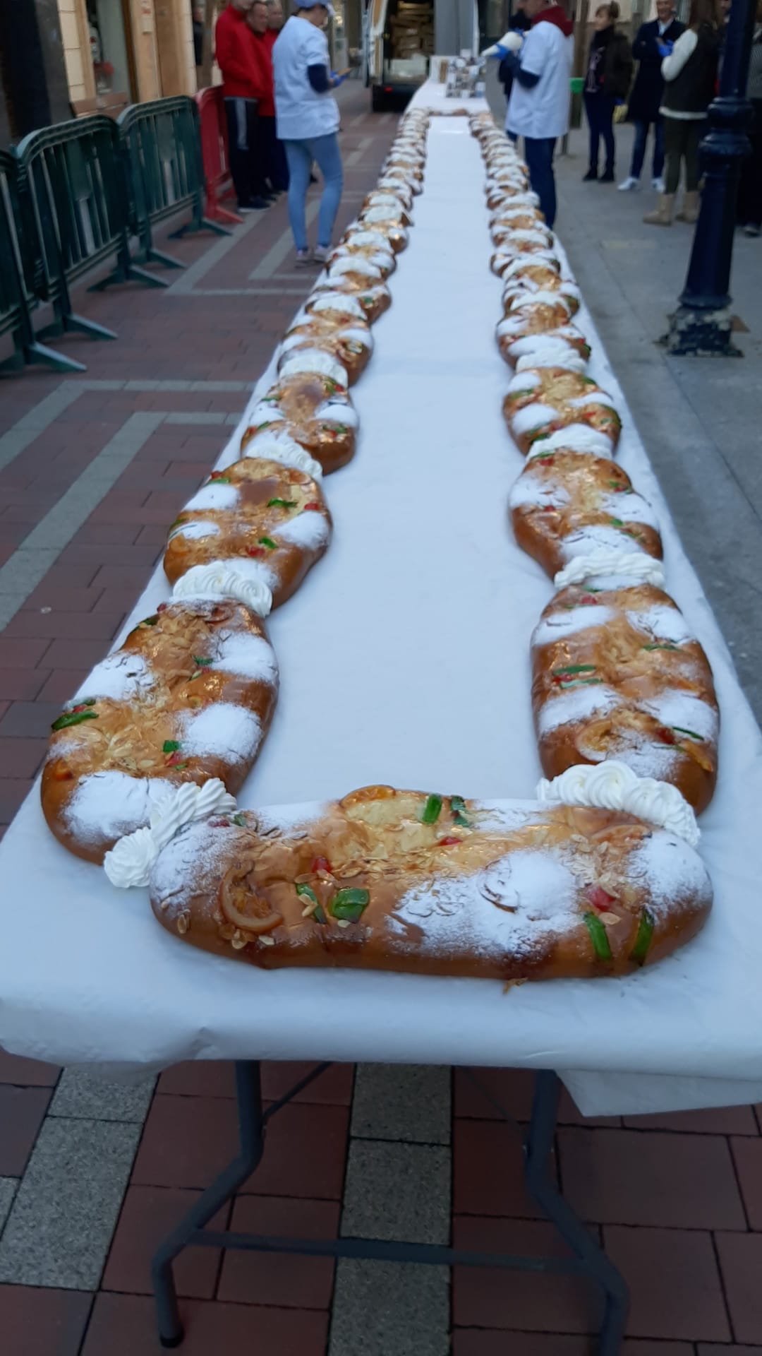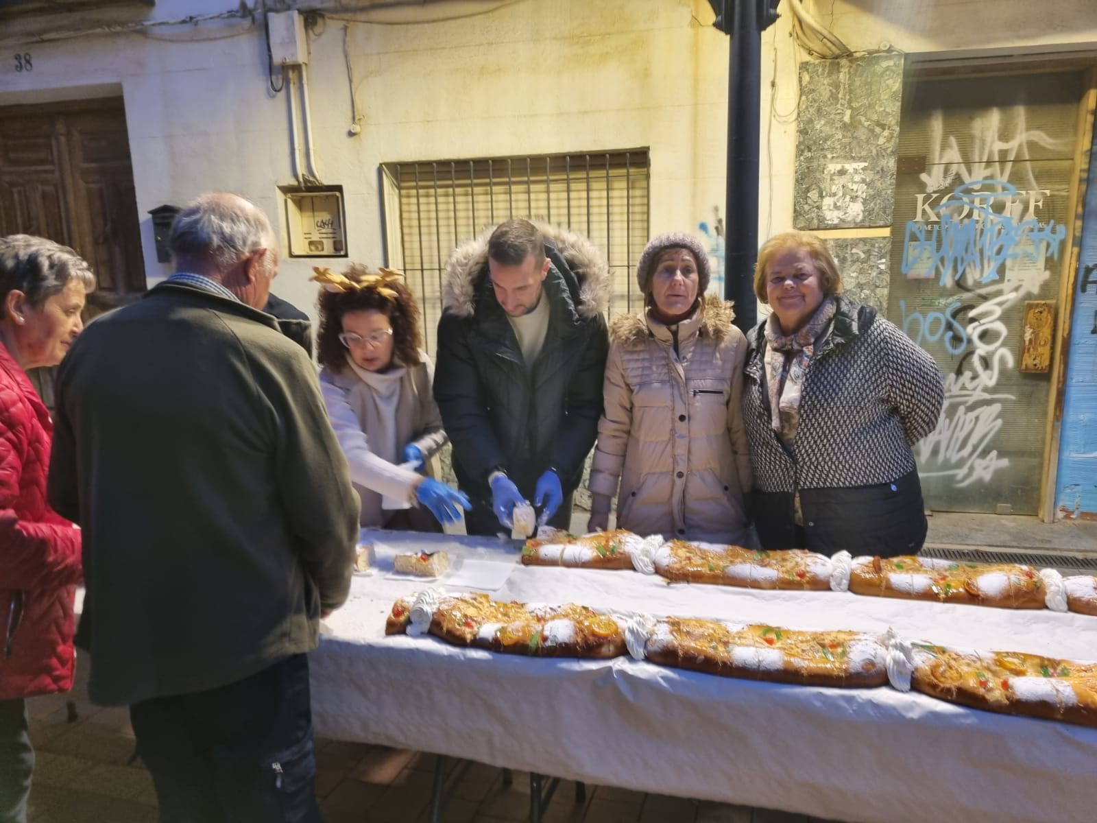 La Panadería Jean de la localidad ha sido la encargada de elaborar los roscones que después han unido entre sí con nata montando un gran roscón de unas 600 raciones..