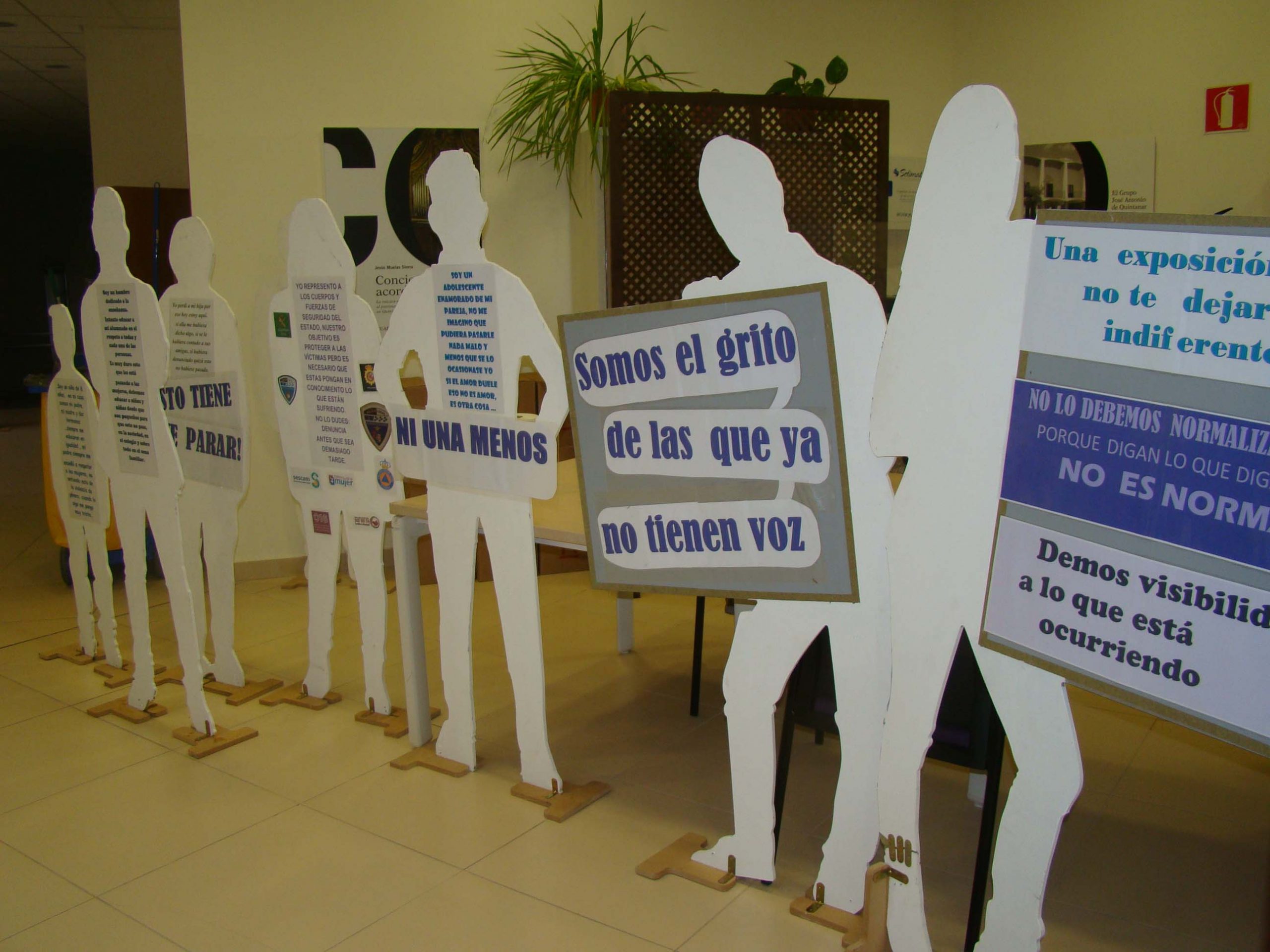 “La exposición que no debería existir” es el nombre de la muestra organizada por el Centro de la Mujer con la que se pretende dar mayor visibilidad a las víctimas de la Violencia de Género. Una exposición que, aunque estaba prevista instalarse en la Plaza de la Constitución, las inclemencias meteorológicas han hecho que se trasladase al hall del Ayuntamiento donde ha sido inaugurada con la presencia tanto de las Técnicas del Centro de la Mujer como del alcalde, Juan Carlos Navalón y concejales de su equipo de Gobierno.