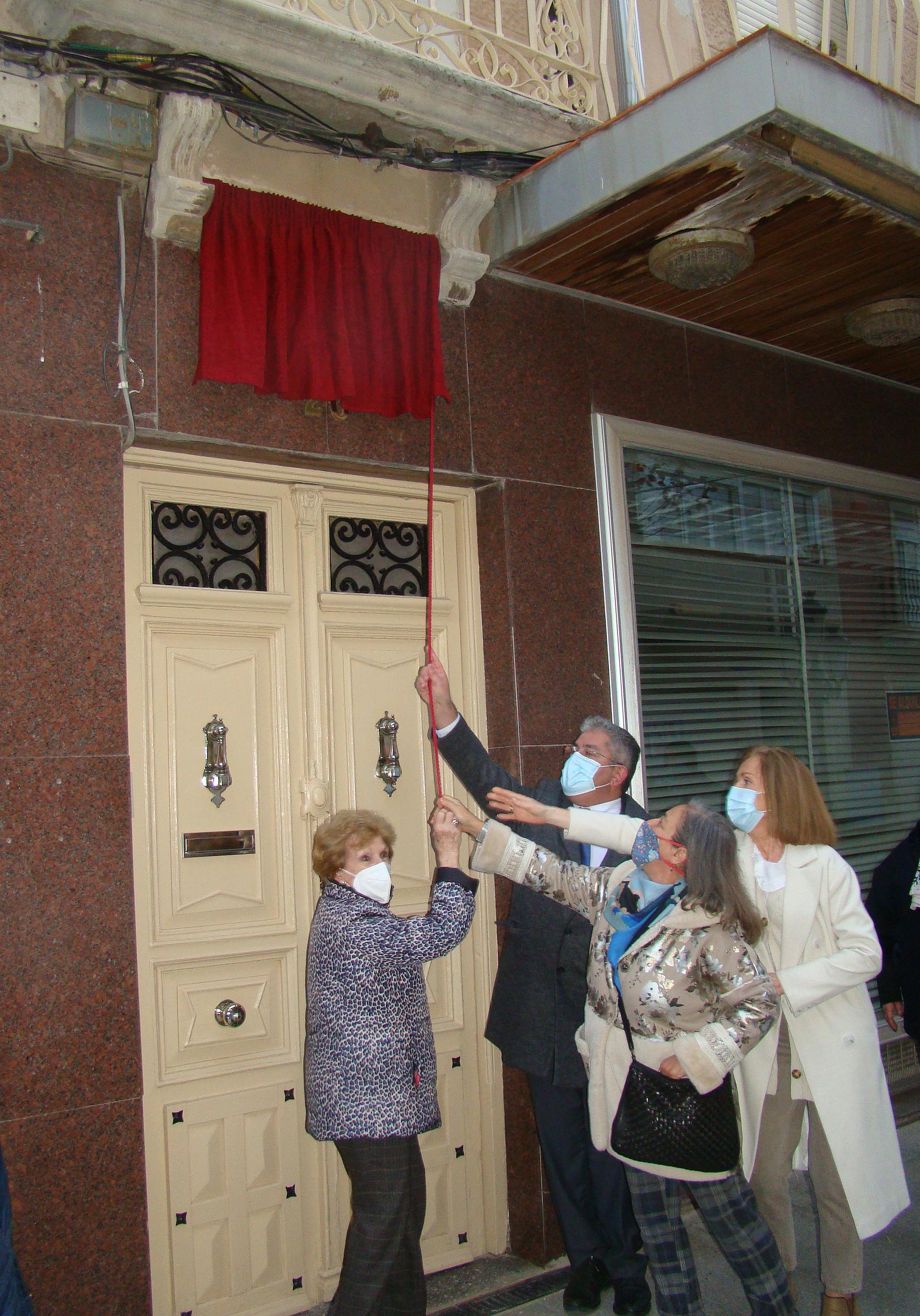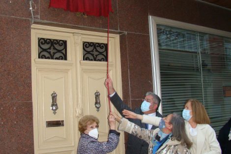 Entre aplausos emocionados, los familiares descubrieron la placa que desde ahora presidirá la fachada de la vivienda donde nació y creció el Padre Juan Martín de Nicolás.