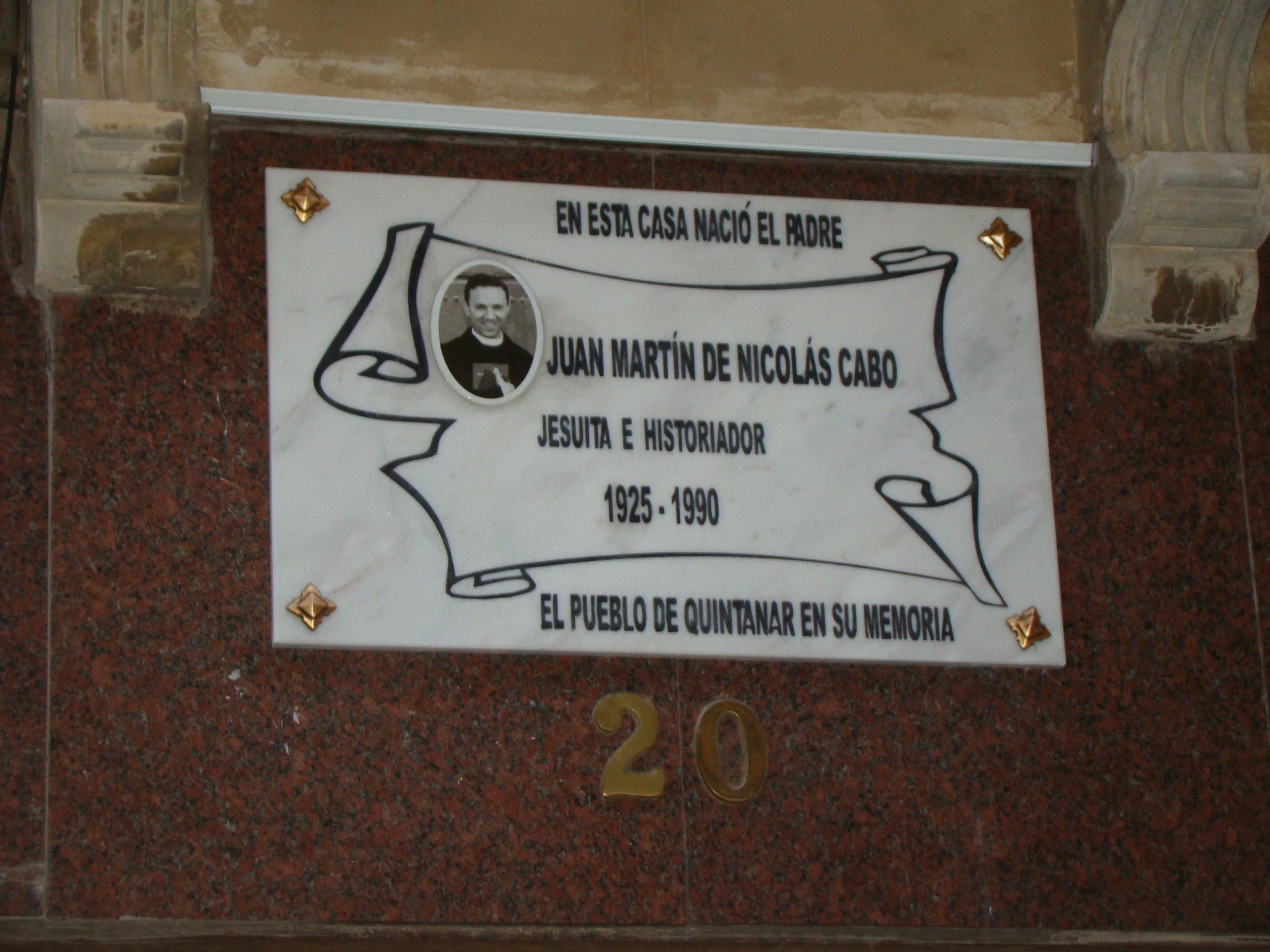 En la tarde del viernes, 18 de diciembre, se llevó a cabo el descubrimiento de una placa en honor al quintanareño Padre Juan Martín de Nicolás, jesuita gran apasionado de la Historia y principal promotor de la divulgación histórica y cultural de la localidad.