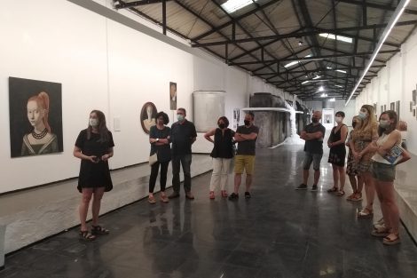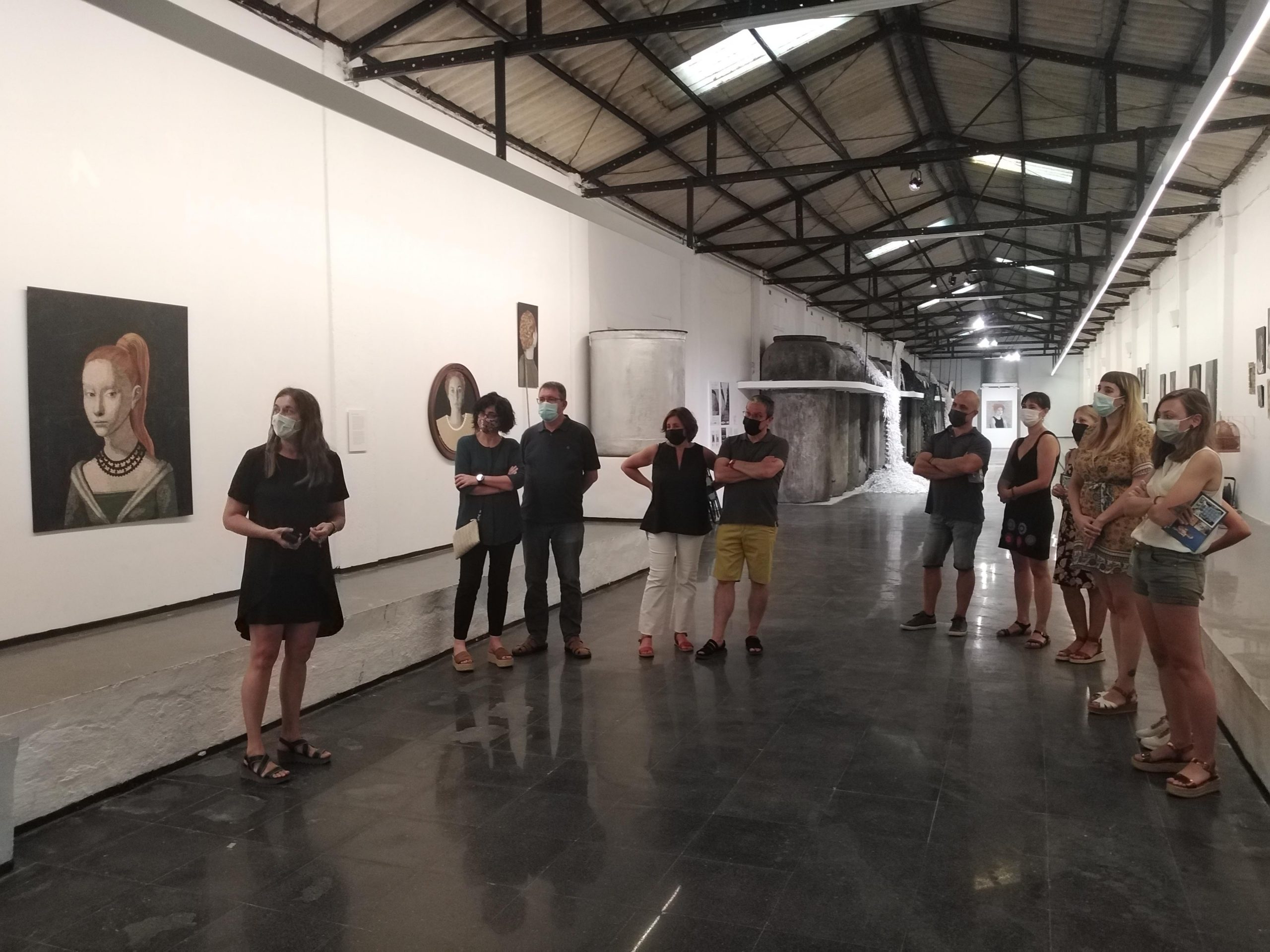 Se trataba, por un lado, de una visita comentada a la exposición “Giovanna y la mirada eterna” de Elena Poblete con la propia artista como guía. La visita comenzaba con el cuadro que da el título a la muestra y que se encuentra al entrar a la sala. Tal y como explicaba Poblete se trata de una reinterpretación de un cuadro de Ghirlandaio ya que tiene especial predilección por el retrato del renacimiento sobre todo italiano. No obstante, en la exposición también existen guiños a otros artistas del renacimiento. “A mí me interesan muchos las personas, sus sentimientos, sus emociones, todo lo que transmiten a través de gestos o miradas y esa interacción que pueden tener con el público”.