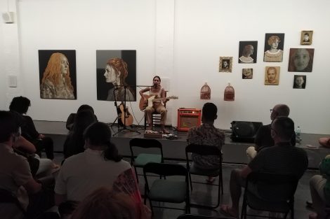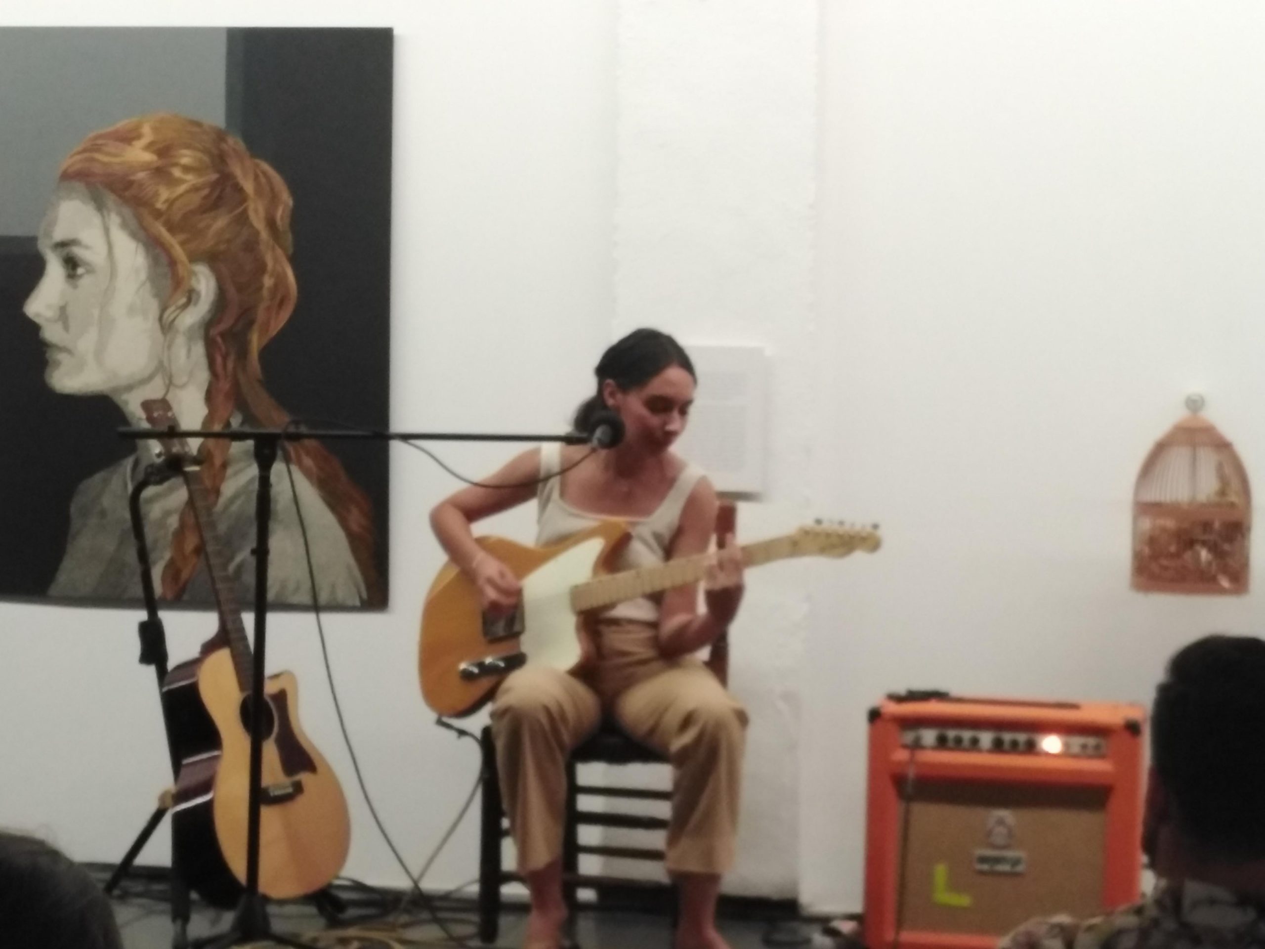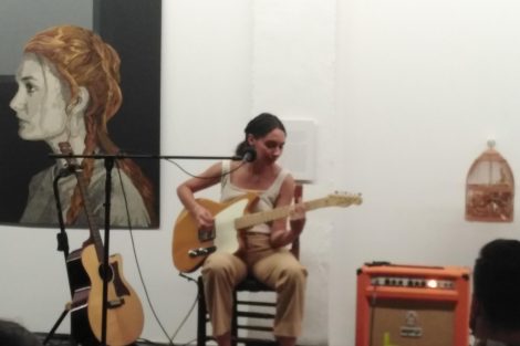 La tarde del sábado tenía lugar en el Espacio-Arte El Dorado una visita guiada por la exposición de Elena Poblete que concluyó con un concierto de la quintanareña Selene Casas.